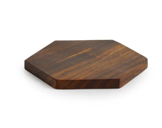 แผ่นรองแก้วไม้เชียสมงานฝีมือทรงหกเหลี่ยม ชุด 6 ชิ้น แผ่นรองแก้วไม้สำหรับเครื่องดื่ม ดูดซับน้ำได้