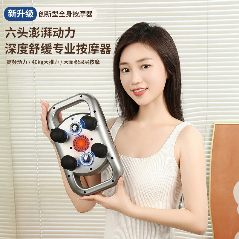 ปืนนวดหัว 6 หัว ผ่อนคลายกล้ามเนื้อชั้นลึก พร้อมระดับความเร็ว 12 ระดับ ชาร์จผ่าน USB สำหรับหลังส่วนล่างและทั่วร่างกาย