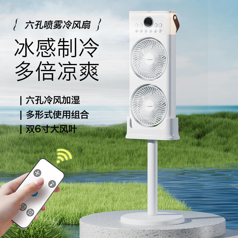 เครื่องทำความเย็นแบบตั้งโต๊ะ 6 รู พร้อมฟังก์ชั่นเพิ่มความชื้นและฟอกอากาศ สำหรับใช้ในสำนักงานหรือหอพัก