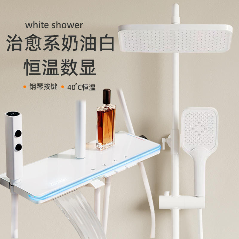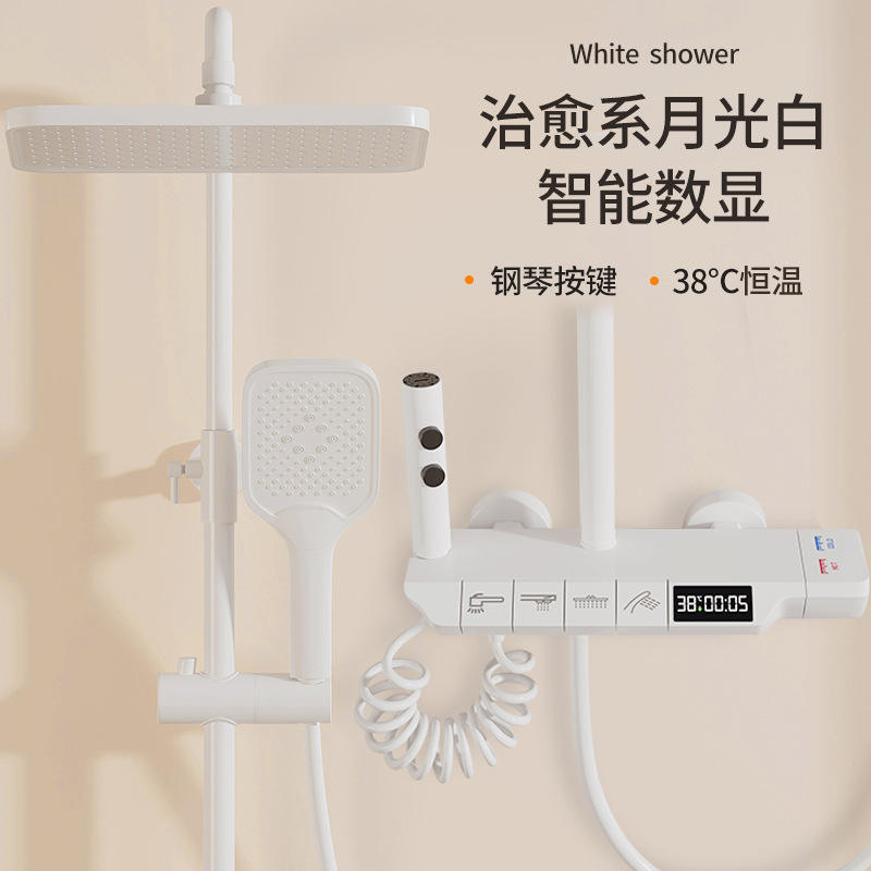 ชุดฝักบัวอาบน้ำ 6 ชิ้น รูปทรงสี่เหลี่ยมผืนผ้า ทองแดง พร้อมหน้าจอดิจิตอลควบคุมอุณหภูมิ ฝักบัวแบบเรนชาวเวอร์