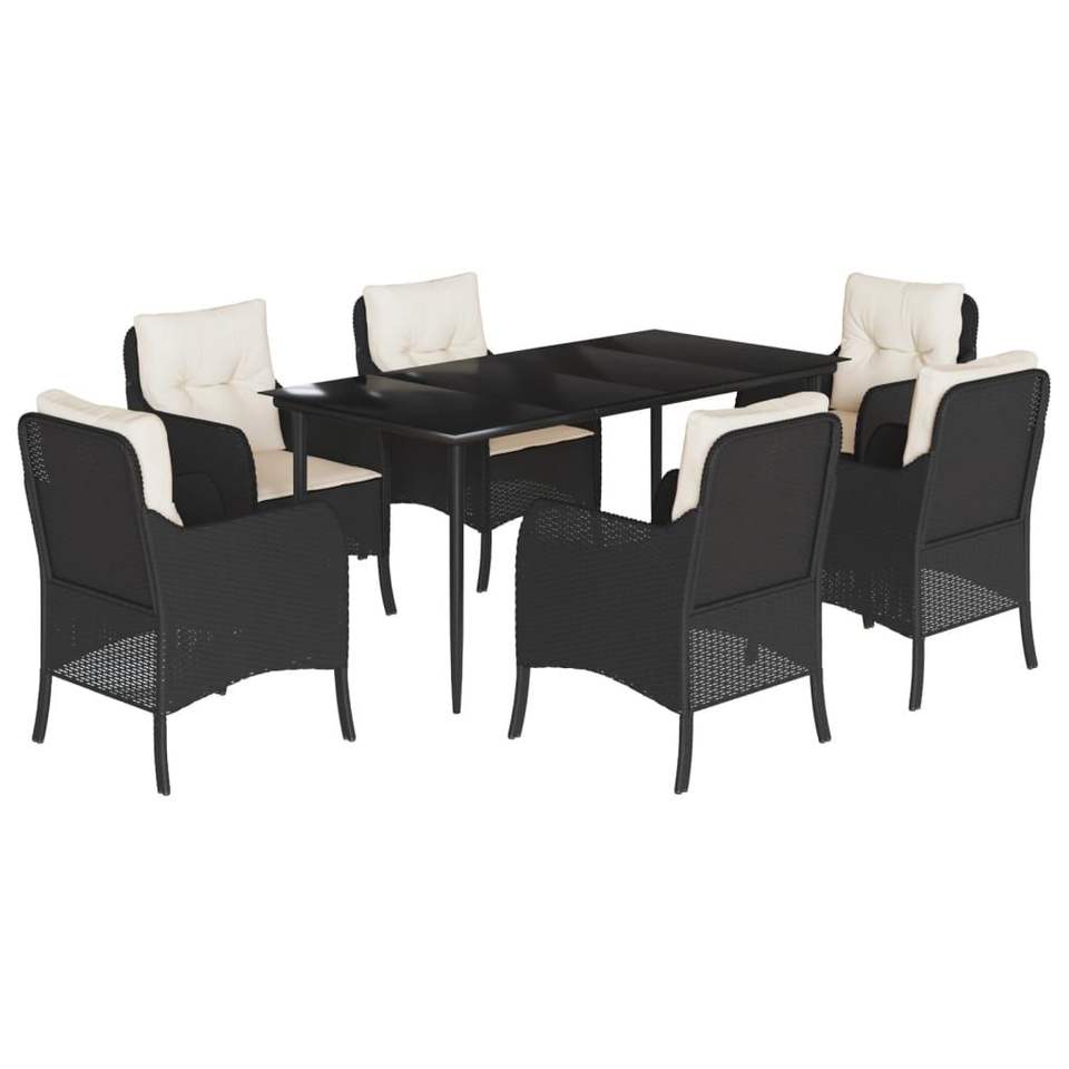 ชุดโต๊ะรับประทานอาหารในสวน 6 ที่นั่ง พร้อมเก้าอี้หวาย PE สีดำ ปลอกหุ้มถอดออกได้