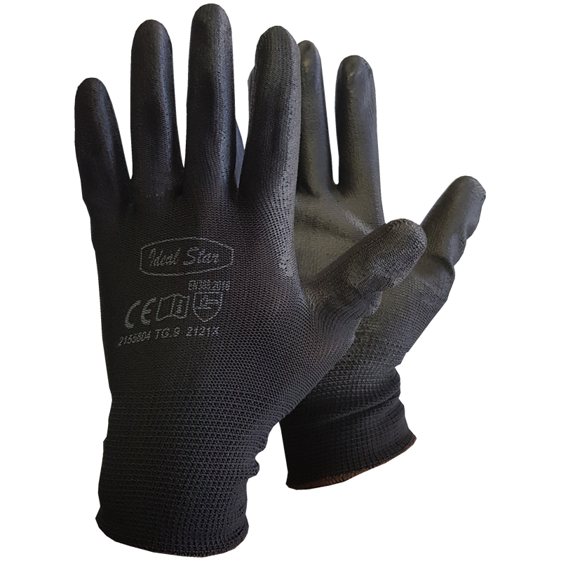 ถุงมือหมุนโพลีเอสเตอร์/ โพลียูรีเทนสีดำขนาด7