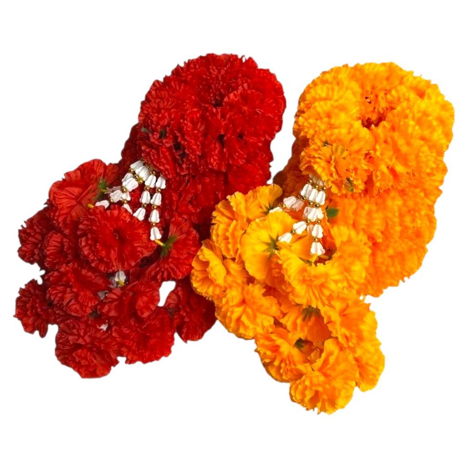 พวงมาลัยดอกดาวเรือง ขนาด S ทรงกลม จัมโบ้ ดอกไม้ประดิษฐ์ สำหรับพิธีกรรม วัด ตกแต่งบ้าน ทำด้วยมือ ผลิตในไทย ผ้าทนทาน พลาสติก