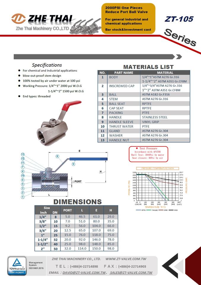 วัสดุบอล:SS316, SS318L เอสเอส316, เอสเอส318แอล