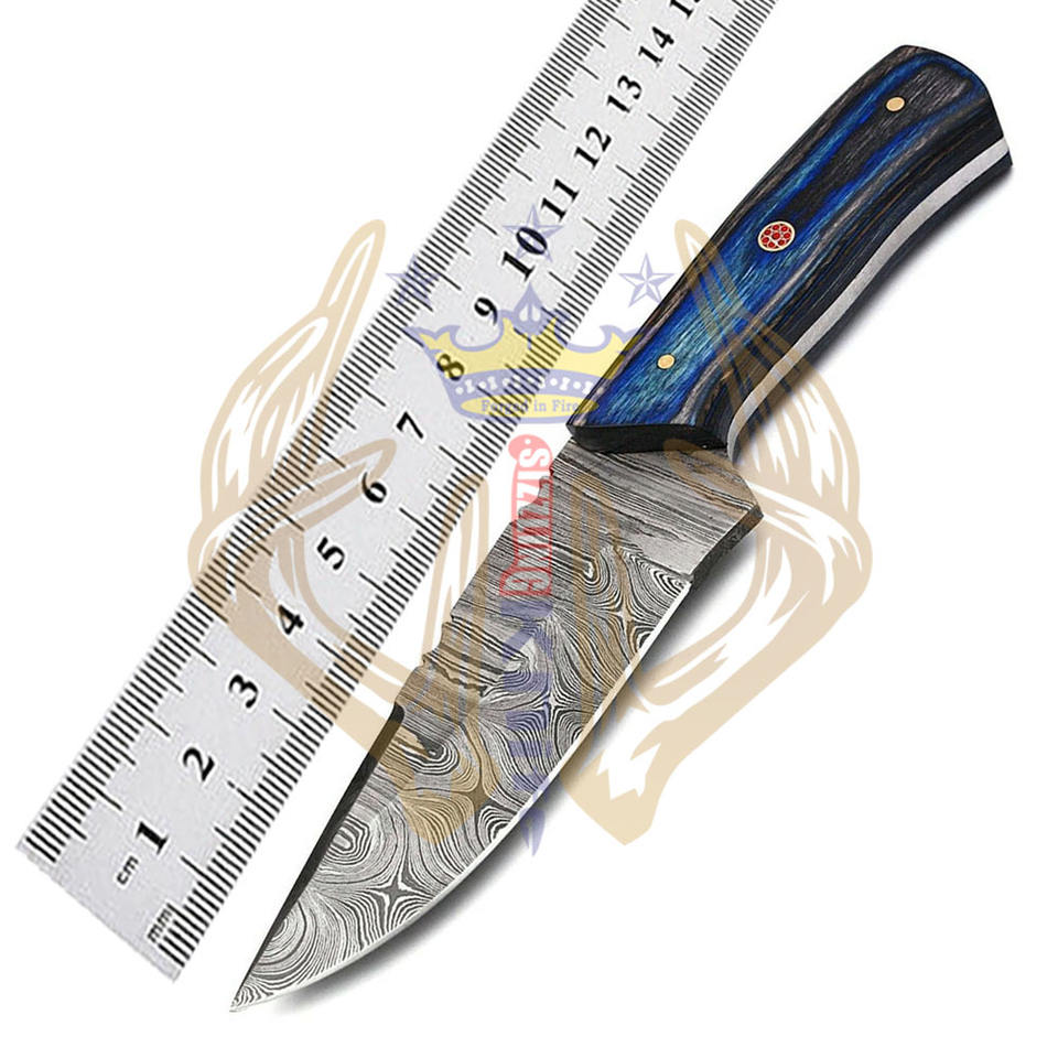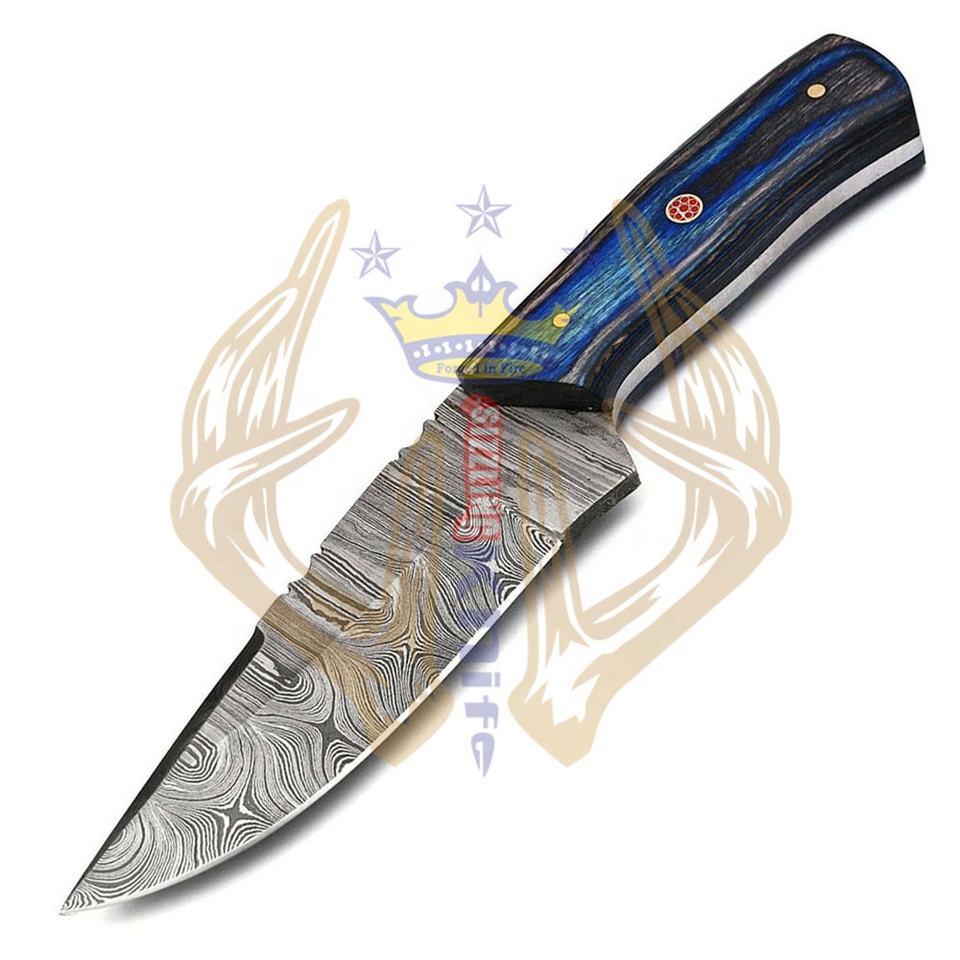 มีดสกินเนอร์เหล็กดามัสกัสทำมือ Sizzco คุณภาพสูง ด้ามไม้เนื้อแข็ง ดีไซน์สวยงาม เหมาะสำหรับการล่าสัตว์