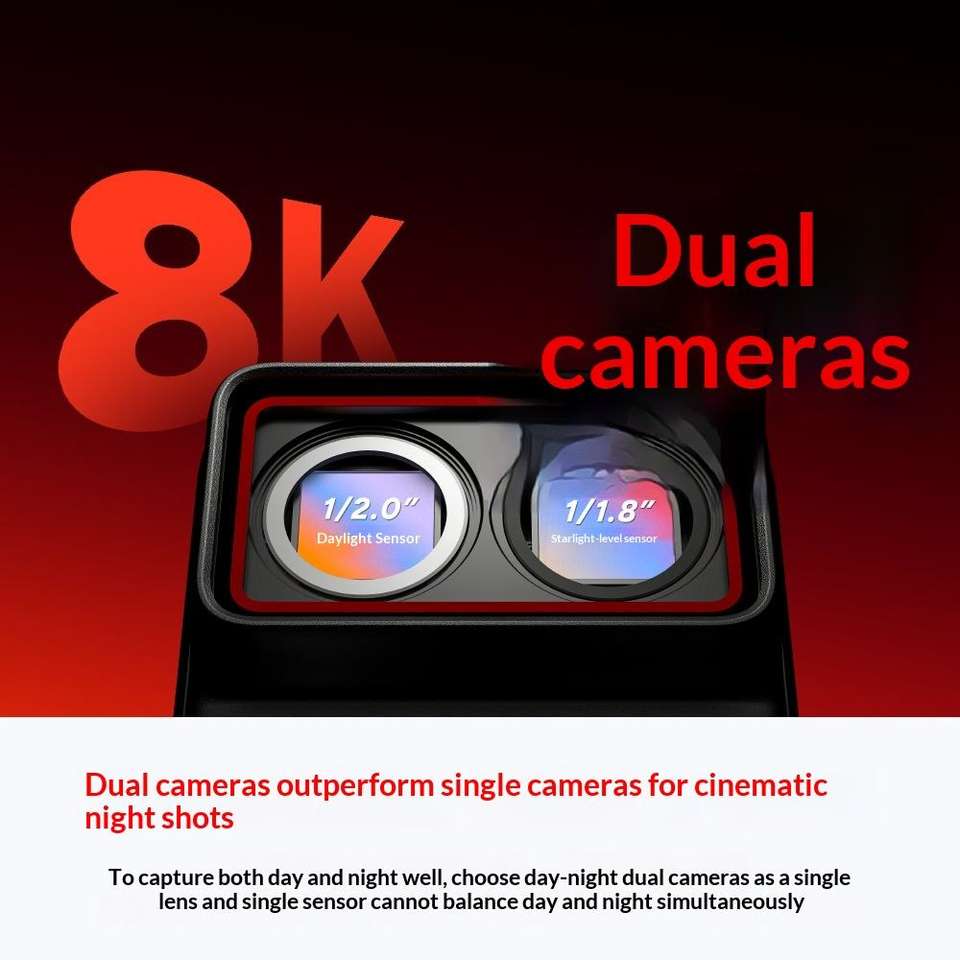 ขนาดเซนเซอร์:เซ็นเซอร์ Daylight ขนาด 1/2.0 นิ้ว, เซ็นเซอร์ Starlight ขนาด 1/1.8 นิ้ว