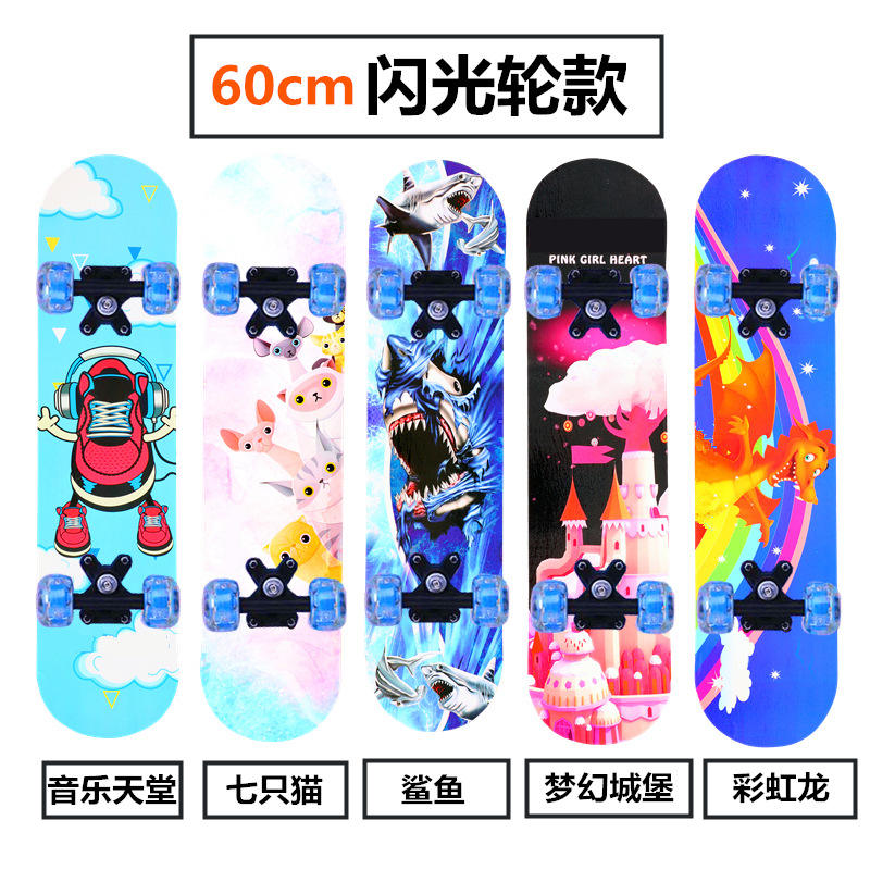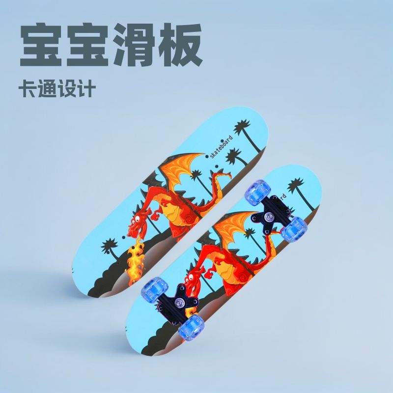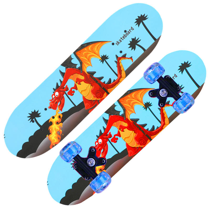 สเก็ตบอร์ดเด็ก ล้อสี่ล้อมีไฟ ลายการ์ตูนมังกร รุ่น 2406A วัสดุ PP สำหรับเด็กหัดเล่น