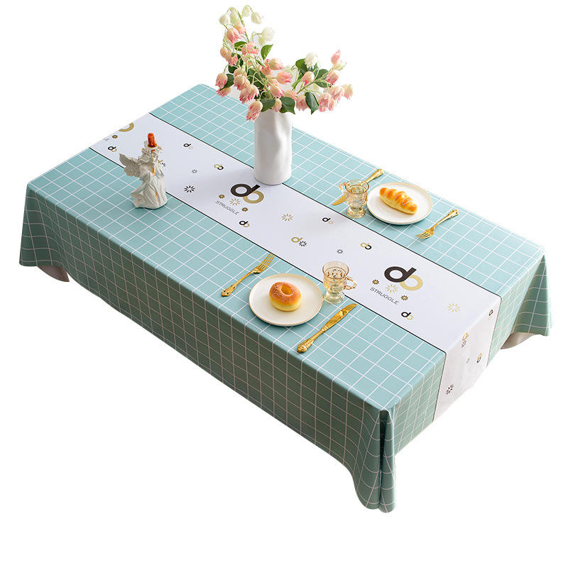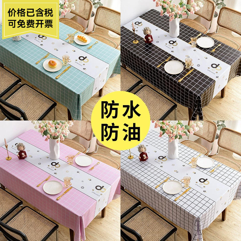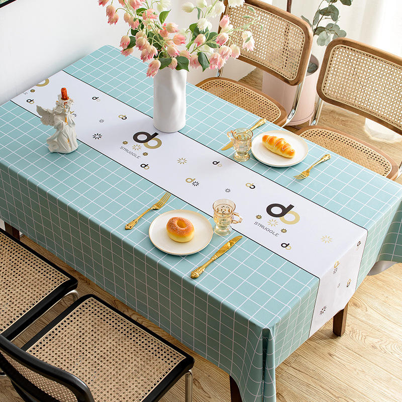ผ้าปูโต๊ะลายตาราง PVC ผ้าปูโต๊ะทรงสี่เหลี่ยมผืนผ้าพิมพ์ลายสไตล์นอร์ดิกกันน้ำกันน้ำมันผ้าคลุมโต๊ะรับประทานอาหารที่บ้าน