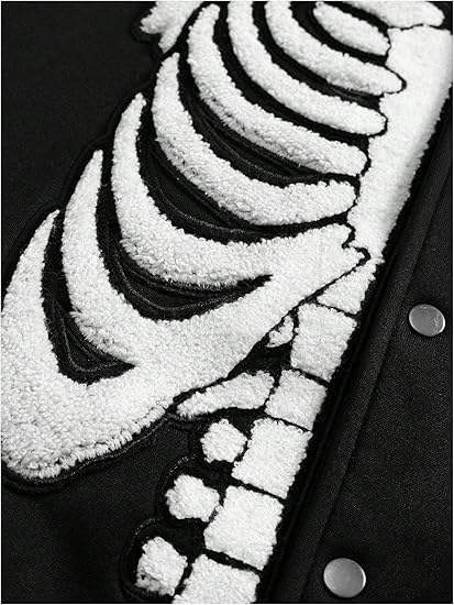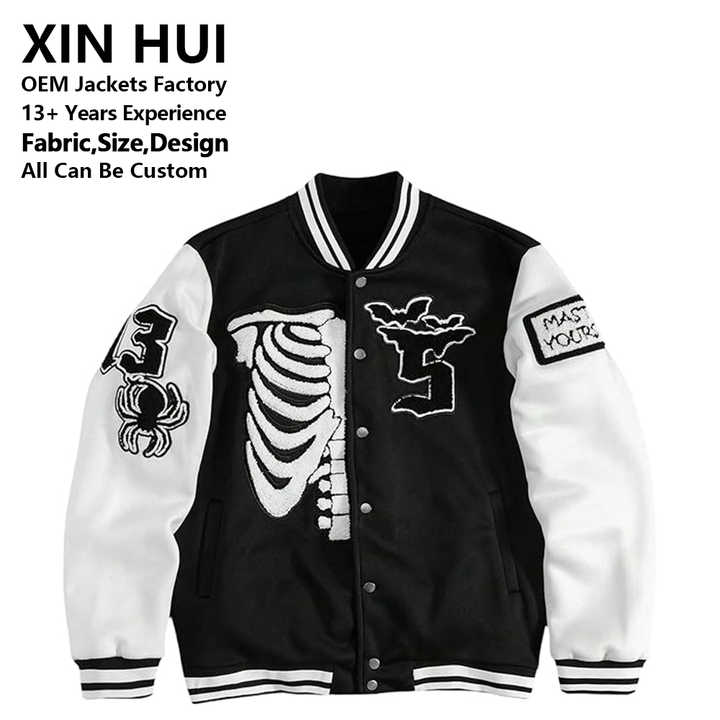 Skeleton Bone Varsity Unisex Hip Hop Embroidery Cross Heart Flame Letterman Retro Style Custom Bomber Jacket Winter Windproof