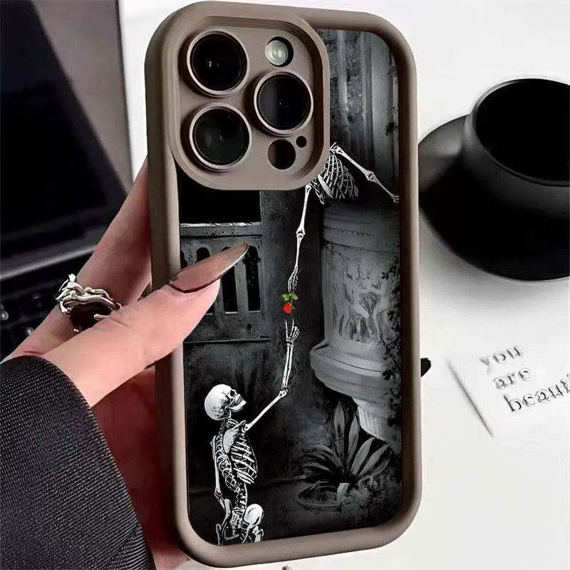 เคสโทรศัพท์ซิลิโคนนิ่มลายโครงกระดูกสำหรับ iPhone 7 8 Plus 15 14 13 12 11 Pro Max X XR XS Max 13 Mini 16 17 ป้องกันการกระแทก