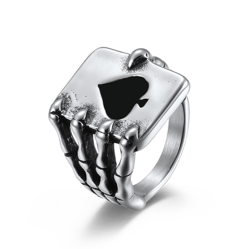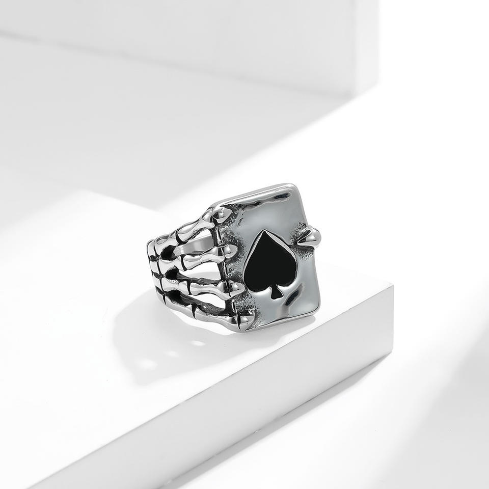 แหวนรูปโครงกระดูก ไพ่สปด โลหะผสมสังกะสี เครื่องประดับสำหรับงานปาร์ตี้ ชุบทองเหลือง