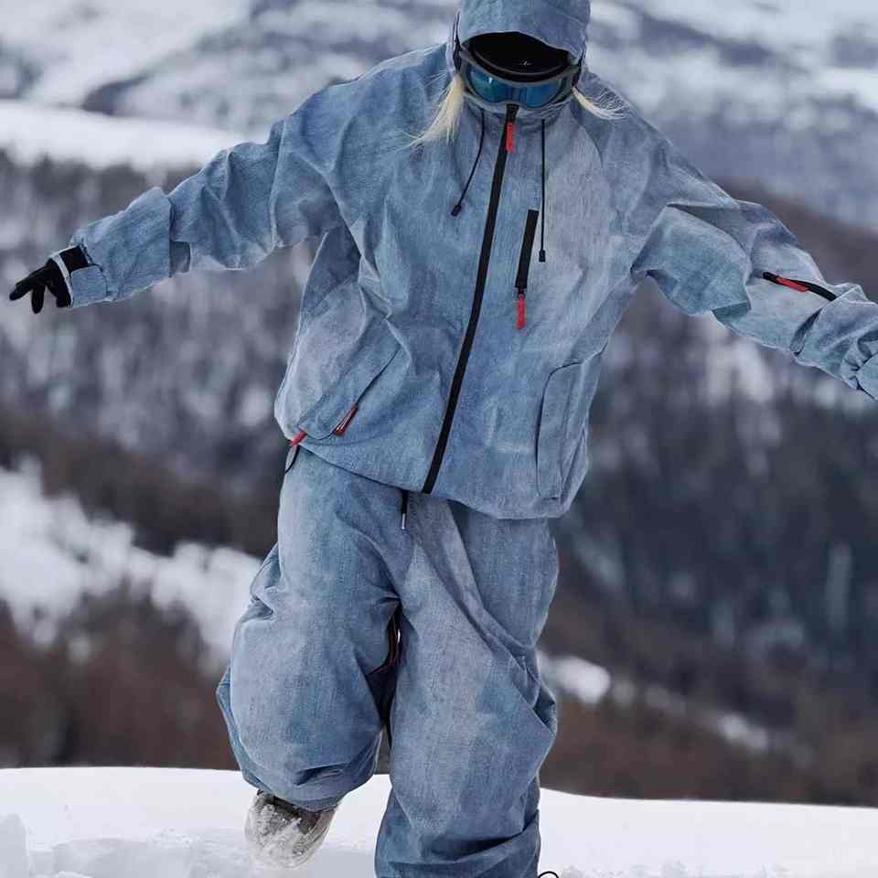 ชุดสกีคุณภาพสูง ผลิตเสื้อผ้าตามสั่ง กางเกงสกีทรงหลวม เสื้อกันลมกันน้ำ ชุดสกี Crane สำหรับเล่นสโนว์บอร์ด สำหรับผู้ชายและผู้หญิง