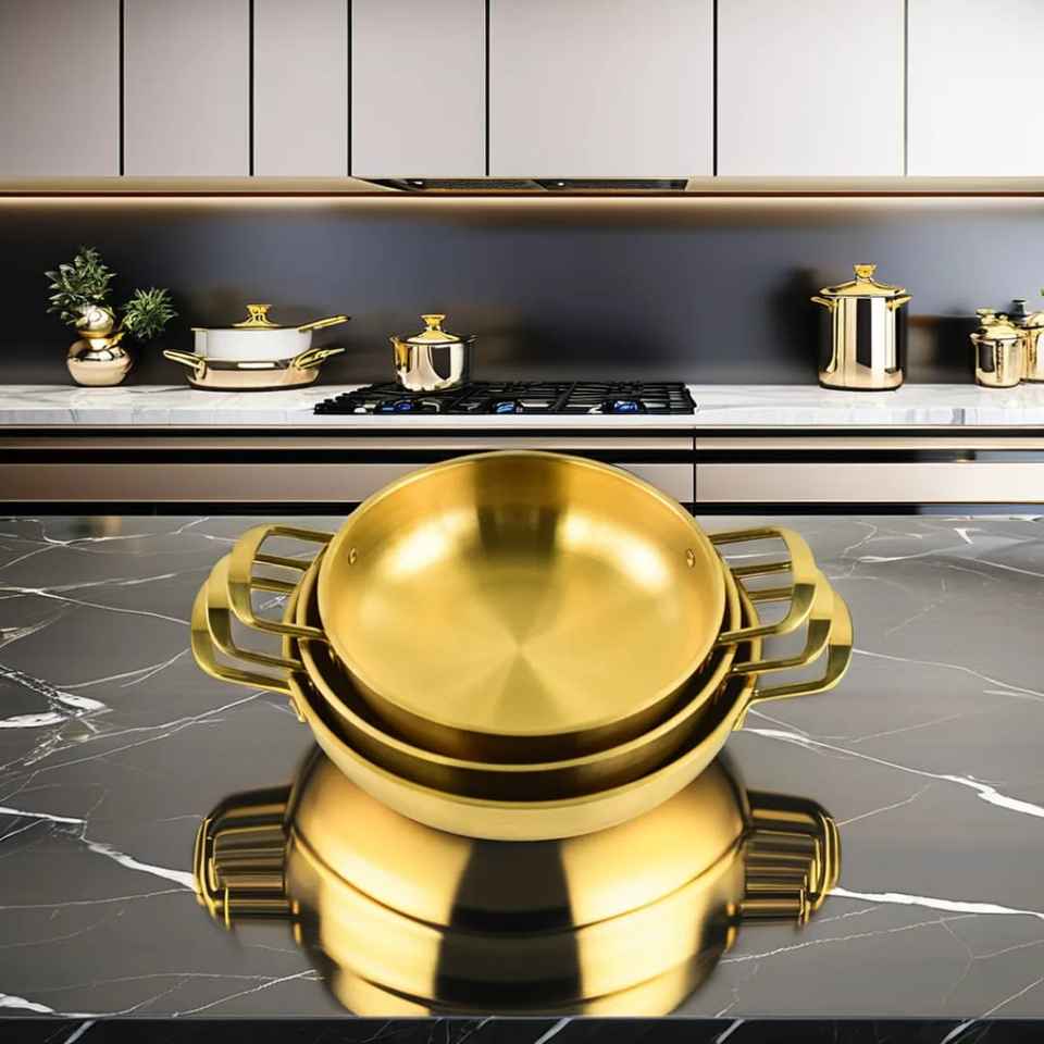 ชุดกระทะเหล็กเคลือบสแตนเลส ดีไซน์ทันสมัย ยี่ห้อ Skies Trader ทนความร้อน ใช้ได้กับเตาแม่เหล็กไฟฟ้า ไม่ติดกระทะ