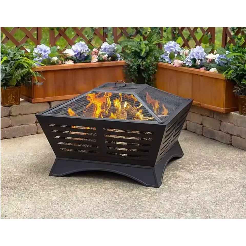 เตาไฟกลางแจ้งโลหะ Skies Trader พร้อมเตาบาร์บีคิว ใช้แก๊สธรรมชาติ สำหรับลานบ้าน พร้อมตะแกรงย่าง เป็นมิตรกับสิ่งแวดล้อม เหมาะสำหรับสวนหลังบ้านและการตั้งแคมป์