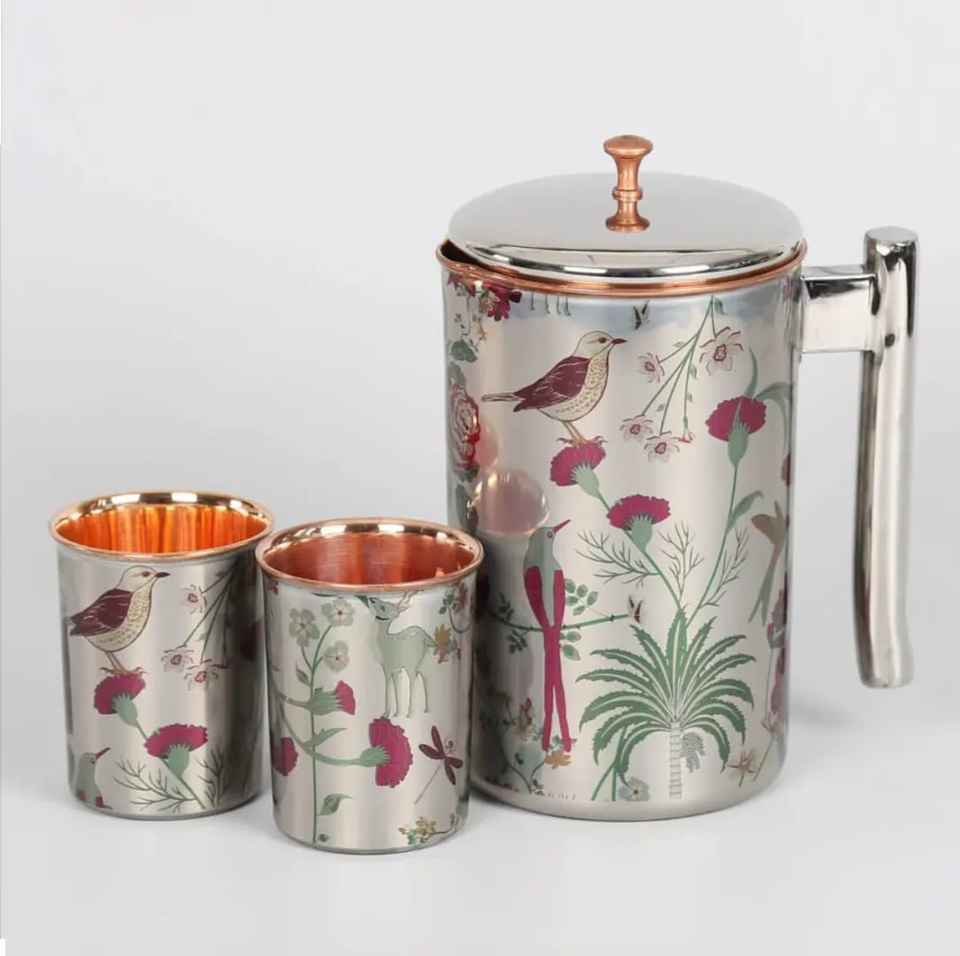 ฝาปิดเหยือกน้ำทองแดงสลักลาย Skies Traders CG05 พร้อมแก้วสองใบ งานแฮนด์เมด สไตล์เรียบง่าย เป็นมิตรกับสิ่งแวดล้อม ของตกแต่งแบบดั้งเดิม เครื่องดื่มโลหะ