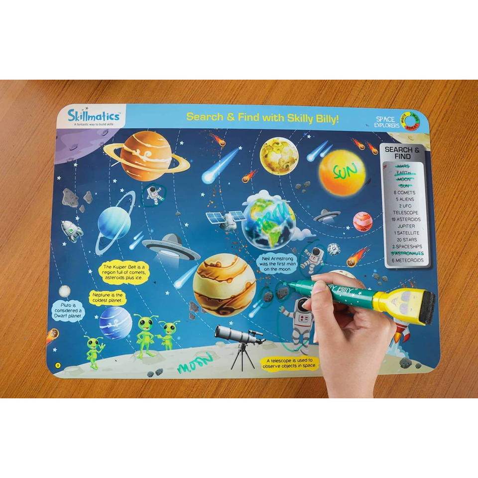 นักสำรวจอวกาศทักษะ-สอนเด็กๆเกี่ยวกับอวกาศ-เขียนและเช็ด