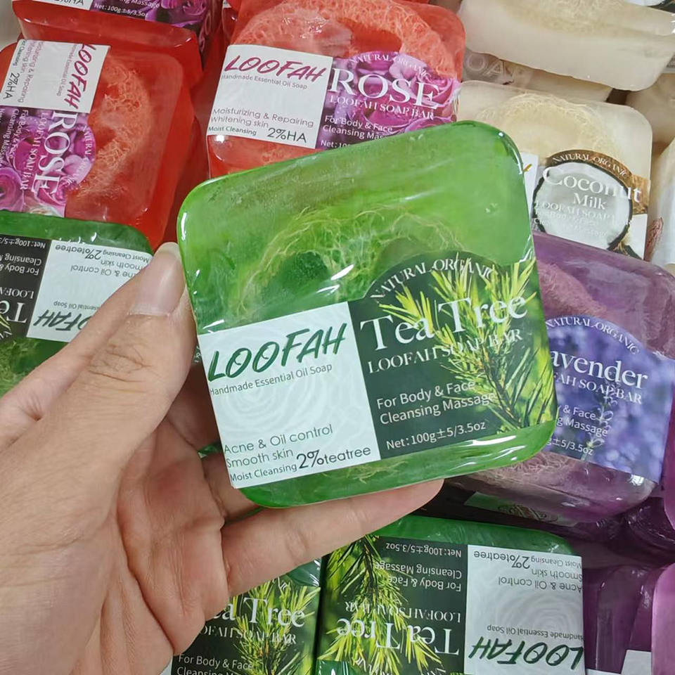 Skin Cleansing Loofah Exfoliating Soap Bar with Natural Essential Oils Whitening Hydrating Formula