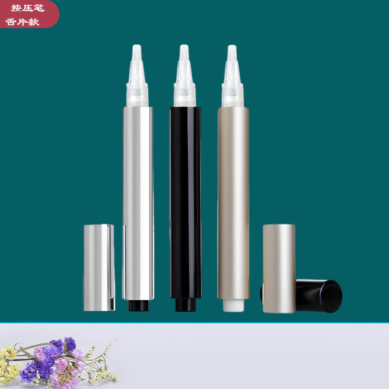 ปากกาแบบกดสำหรับน้ำมันบำรุงผิว 2 มล. 3 มล. หัวอลูมิเนียม บรรจุภัณฑ์เครื่องสำอางโลหะ แบบใช้แล้วทิ้ง สำหรับใส่รองพื้น