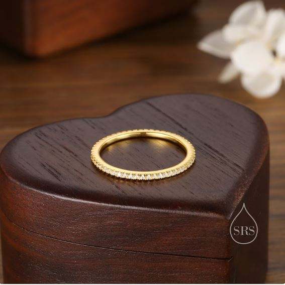 Skinny Crystal Pave Ring in Sterling Silver Gold Vermeil Crystal Pave Ring Stacking Rings Eternity Ring
