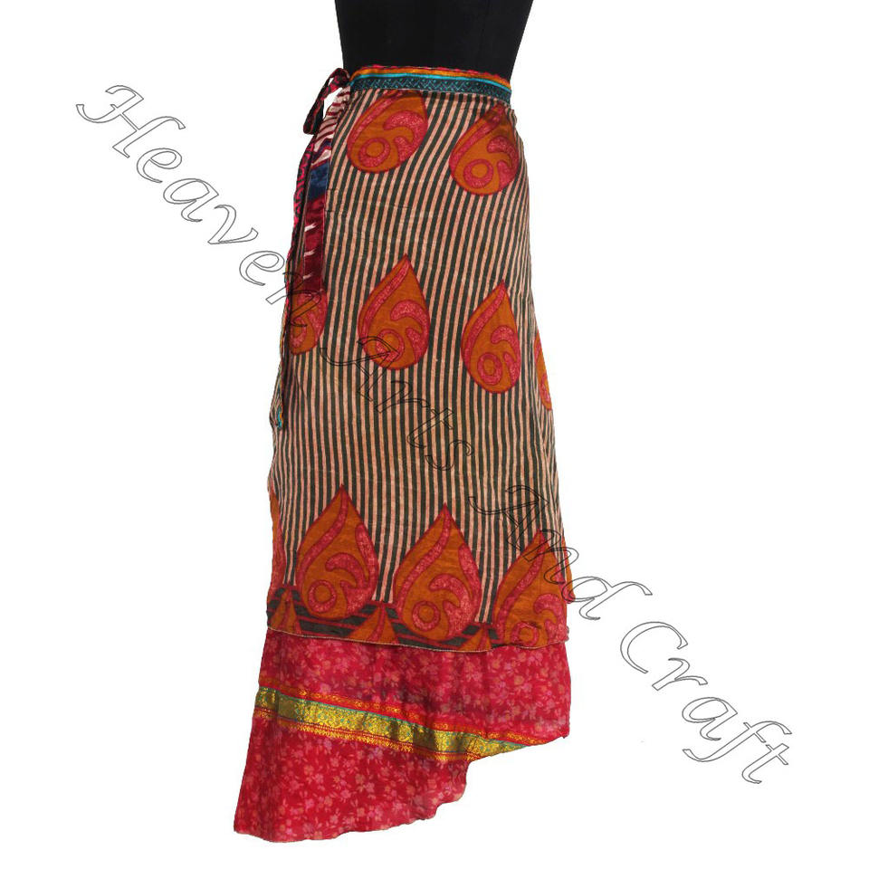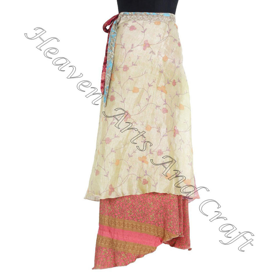 Skirts Beach Vintage Silk Magic 38" Long Wrap Skirt Halter Tube 2 Layer Reversible Magic Silk Saris Wrap Long Skirt Indian