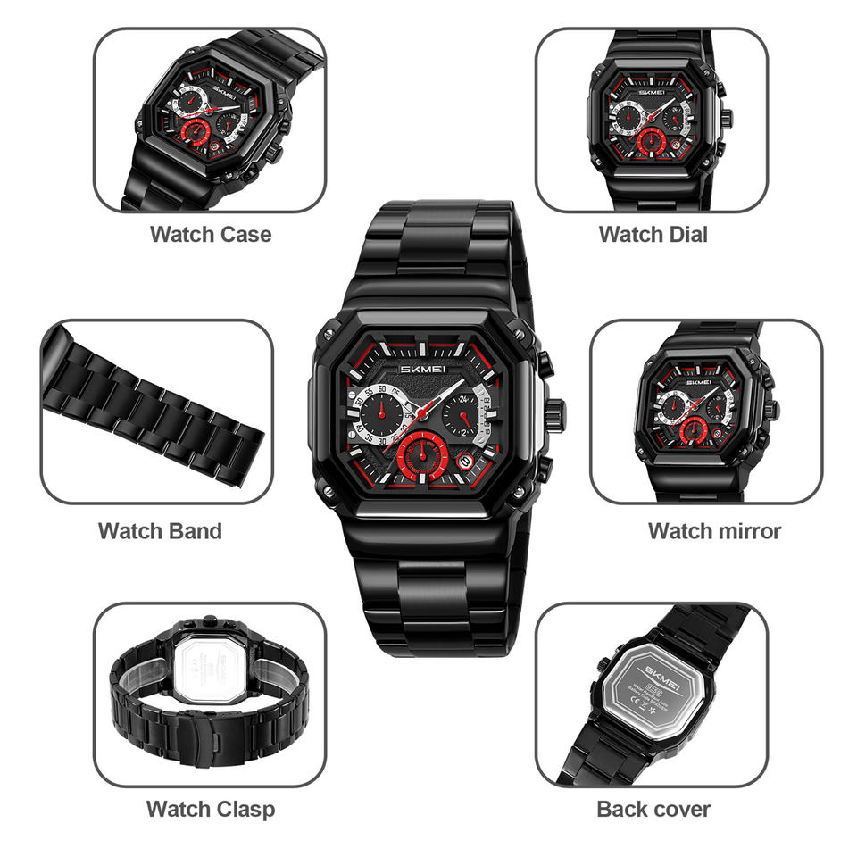 SKMEI 9359นาฬิกาสแตนเลสสตีลลำลอง, สีดำแฟชั่นราคาไม่แพงขายส่งสำหรับ3ATM นาฬิกากันน้ำ