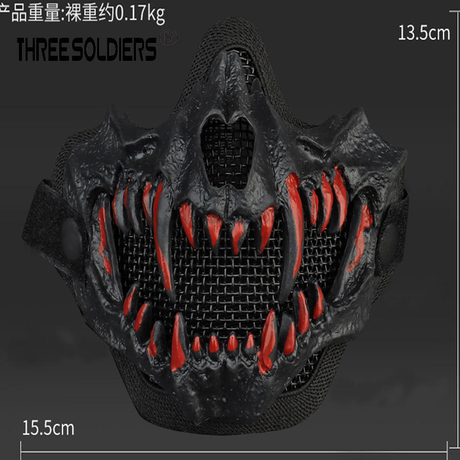 Skull Camo Half-Face Steel Mesh Mask 100% TPE Windproof Dust-Proof Party Film Prop Halloween Cosplay
