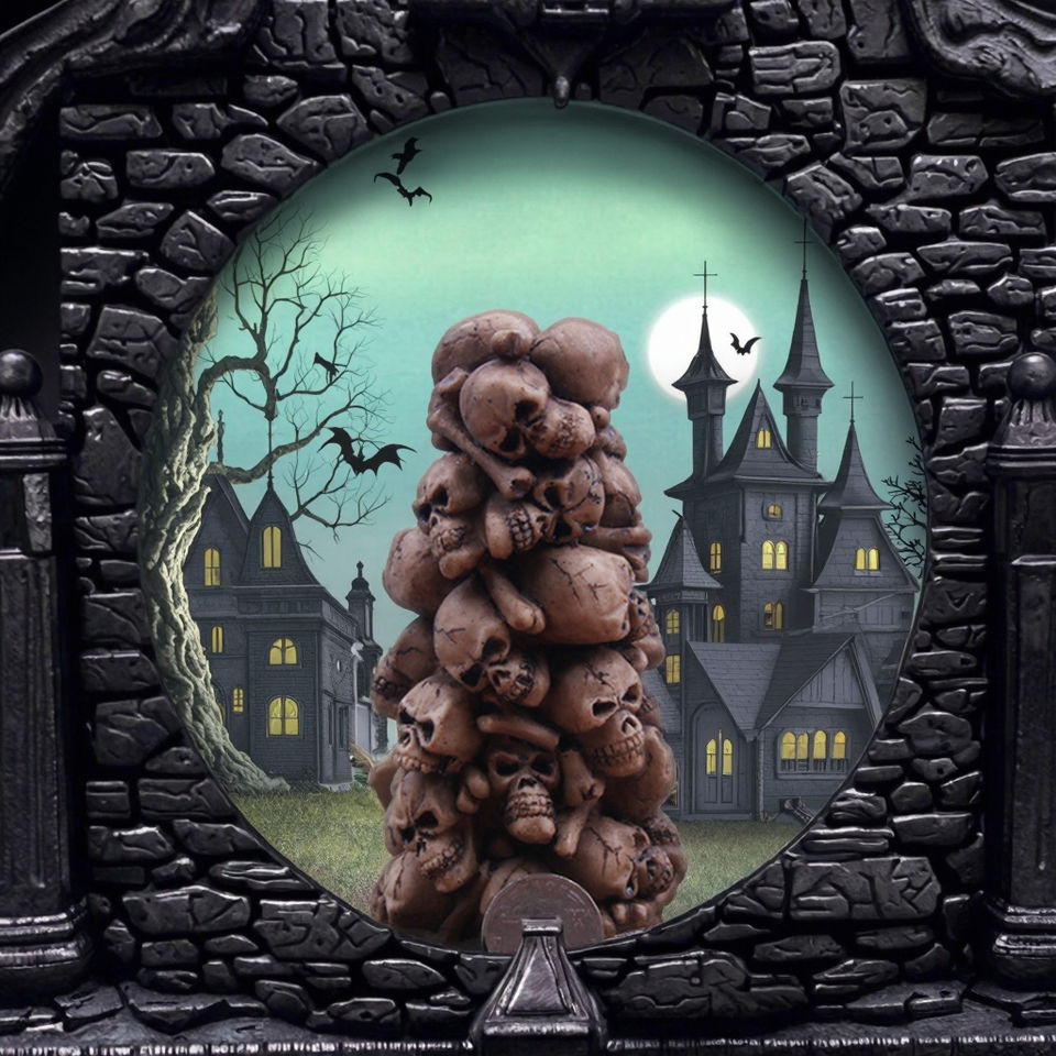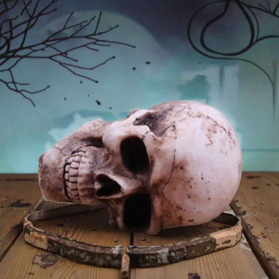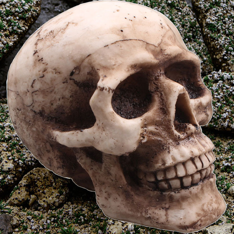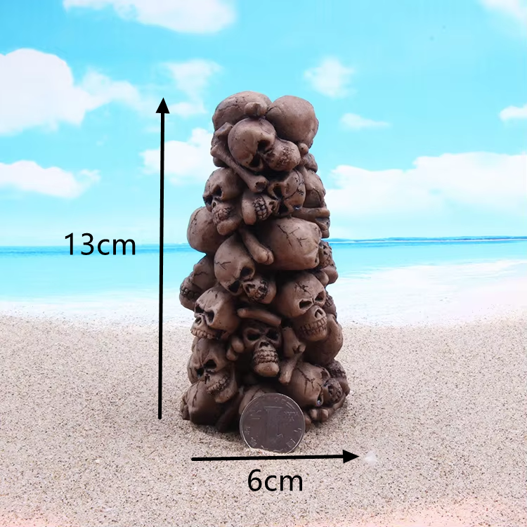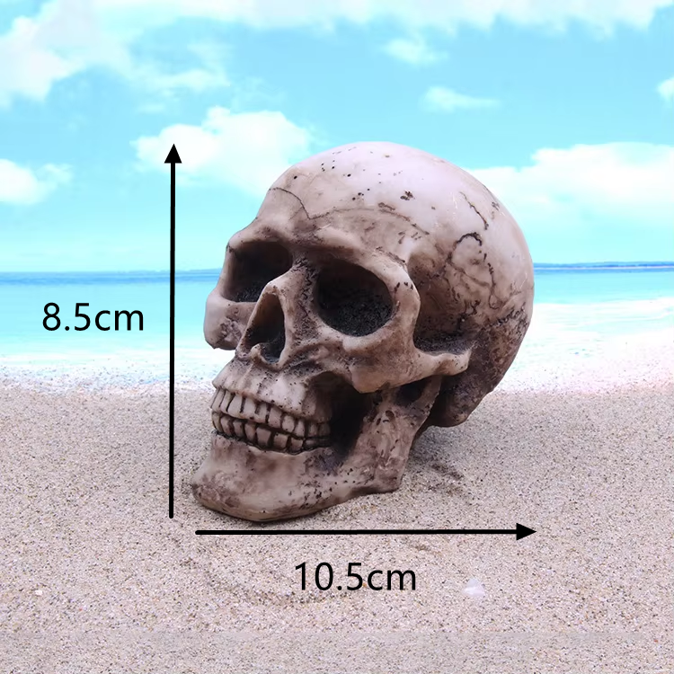 หุ่นจำลองหัวกะโหลกมนุษย์จาก Skull Mountain สำหรับงานเรซิ่น งานประดับตกแต่งตู้ปลา โต๊ะทรายจิตวิทยา หัวกะโหลกแห่งความตาย