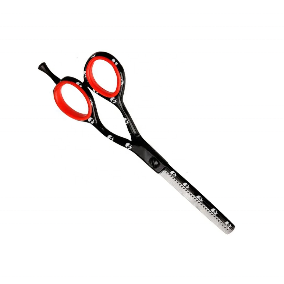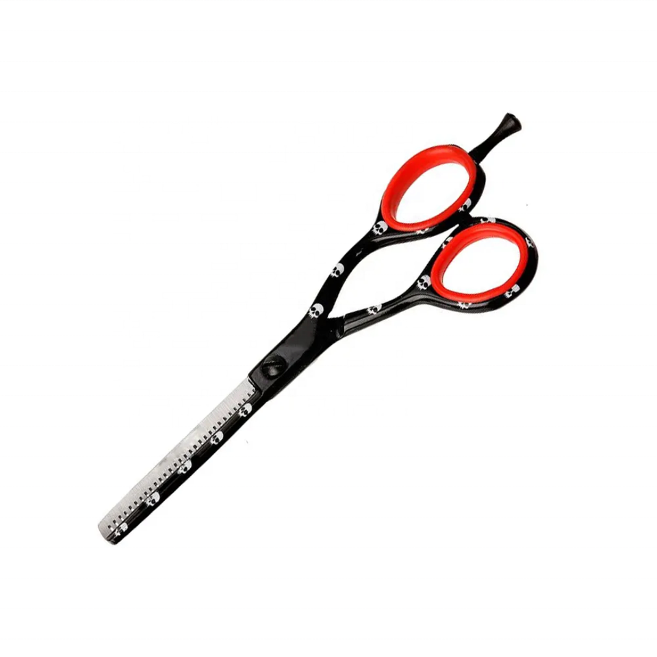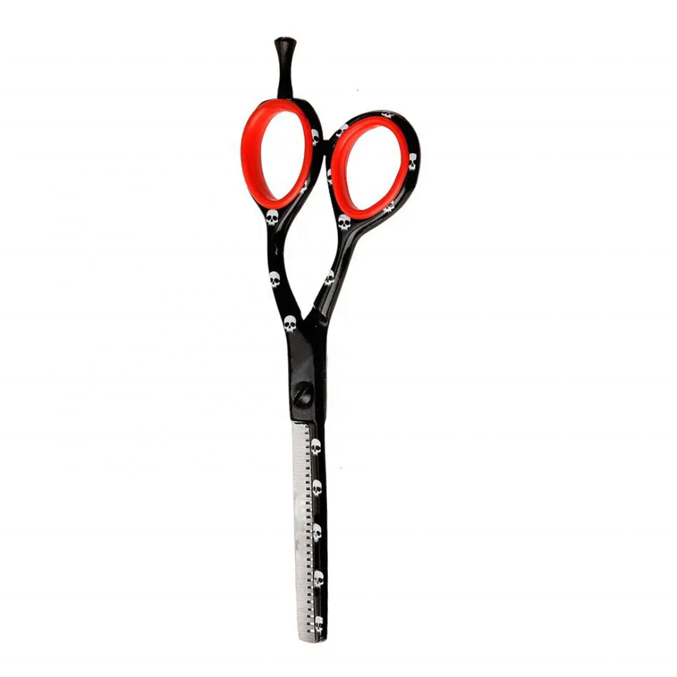 กรรไกรตัดผมกระดาษเคลือบกะโหลกศีรษะกรรไกรตัดผมมืออาชีพ5.5 "กรรไกรซอยบางพร้อมกระเป๋าหนัง