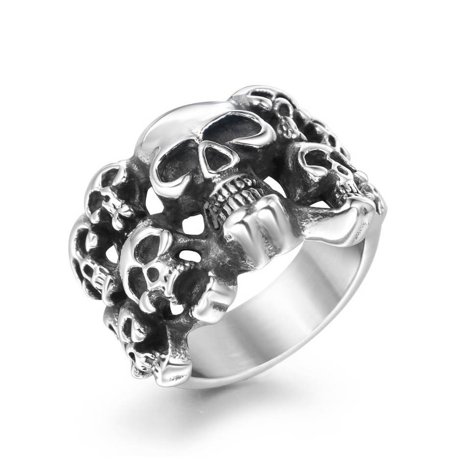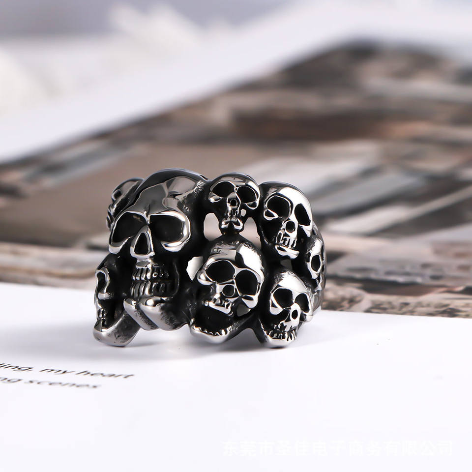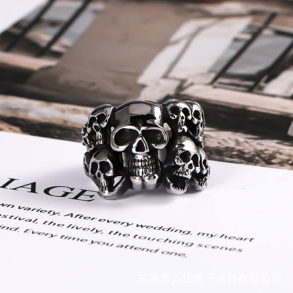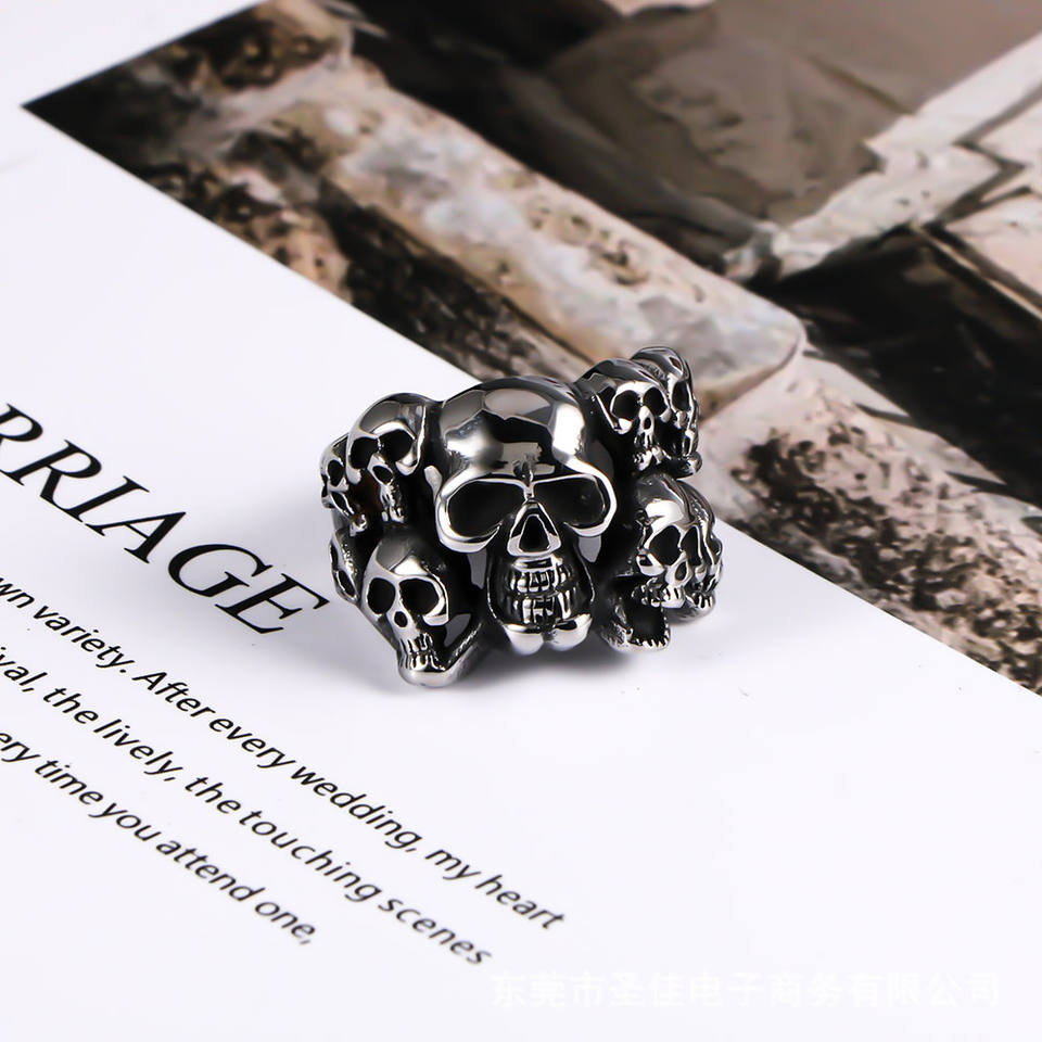 แหวนรูปหัวกะโหลกผู้ชายสไตล์พังก์ดีไซน์โครงกระดูกเรขาคณิต SA145 ของขวัญเครื่องประดับ