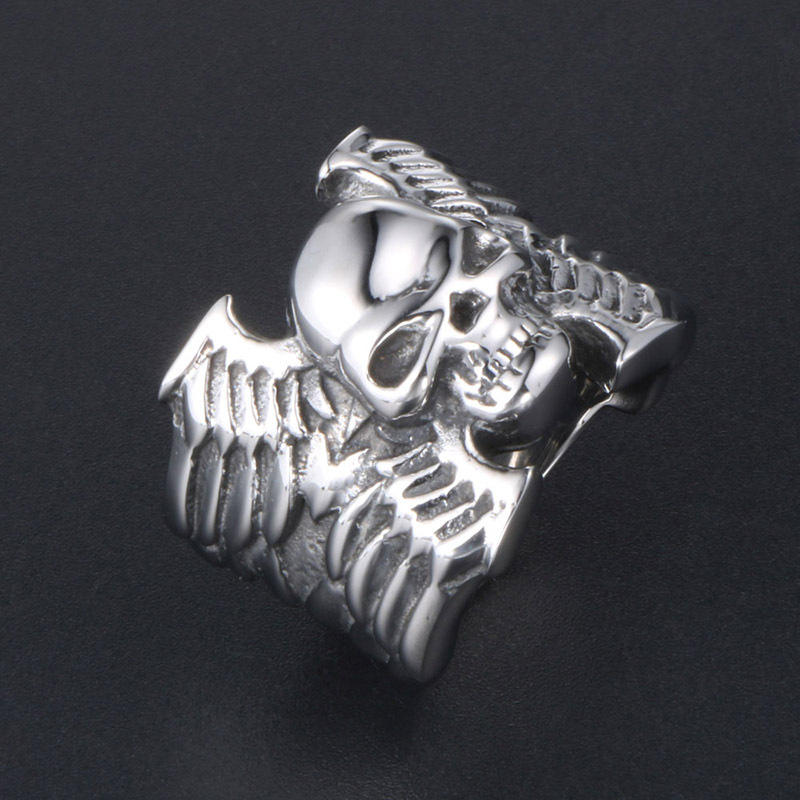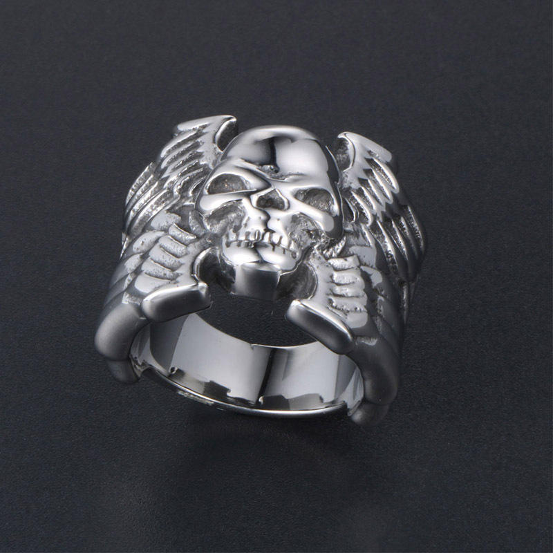 แหวนหัวกะโหลกสำหรับผู้ชายเครื่องประดับสไตล์พังก์สไตล์ไทเทเนียมทำจากเหล็ก SA421ของขวัญ