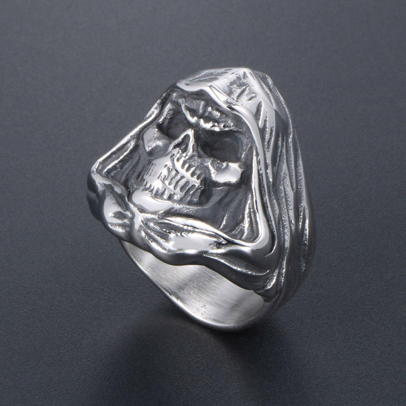 SA863แหวนหัวกะโหลกไทเทเนียมเหล็กเครื่องประดับฮาโลวีนสำหรับผู้ชาย