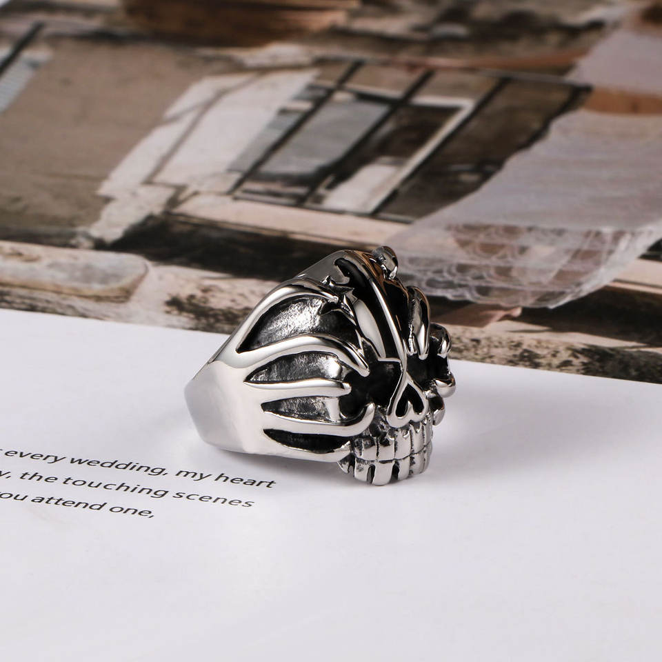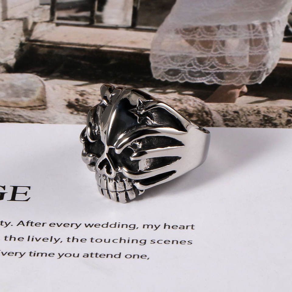SA443แหวนหัวกะโหลกไทเทเนียมเหล็กสำหรับผู้ชายเครื่องประดับพังค์