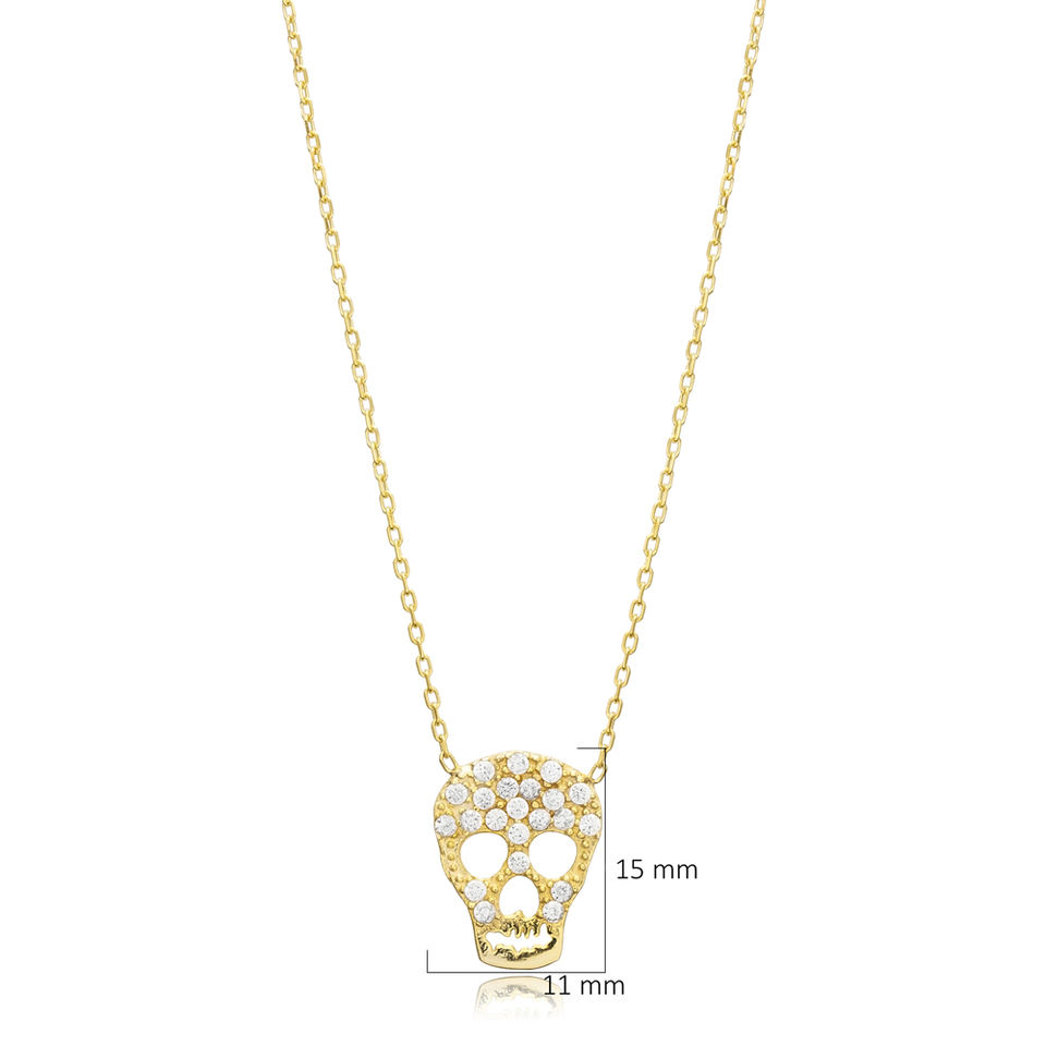 925หินเพทายใสทรงกะโหลกเครื่องประดับเงินสเตอร์ลิงสร้อยคอแบบแฮนด์เมดทำด้วยมือแบบตุรกี