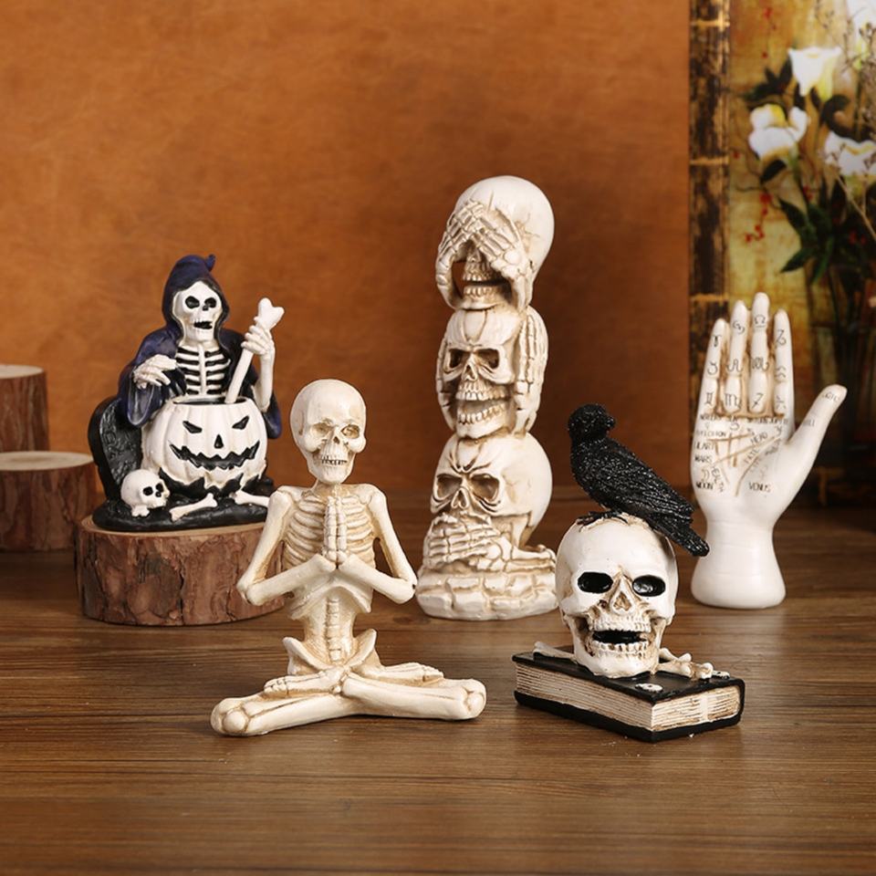 รูปปั้นหัวกะโหลกสแตนเลสสามชั้น วางบนโต๊ะ แกะสลักอย่างมีเอกลักษณ์ ตลกๆ ห้ามมอง ห้ามฟัง ห้ามพูด ไม่ทำสิ่งชั่วร้าย