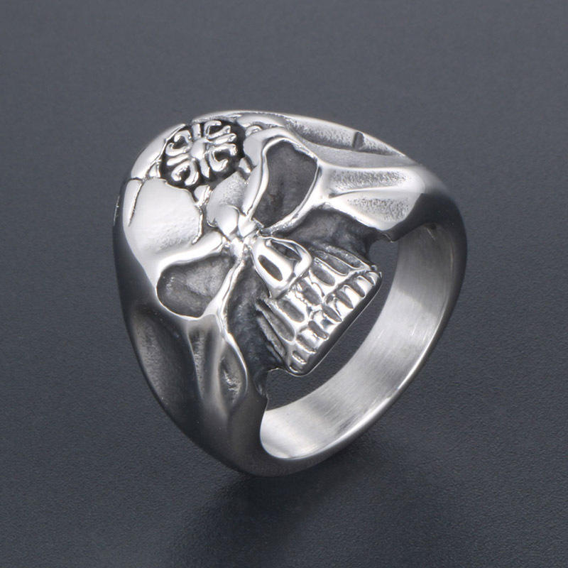 แหวนเหล็กไทเทเนียมรูปหัวกระโหลก เครื่องประดับแฟชั่นสแตนเลสสำหรับผู้ชาย SA901