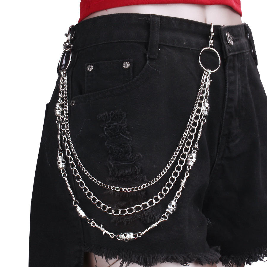 สร้อยคอเอวแบบสามสายรูปหัวกะโหลก โลหะผสมสังกะสี สไตล์ฮิปฮอป พังก์ สำหรับใส่ทุกวัน