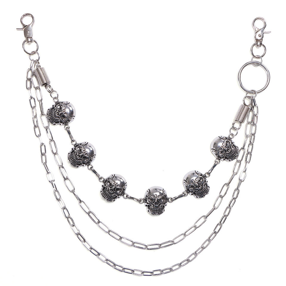 โซ่คาดเอวรูปหัวกะโหลก เงินทิเบต หลายชั้น สไตล์ฮิปฮอป สำหรับกางเกงยีนส์ แฟชั่นลำลอง โซ่คล้องตัว