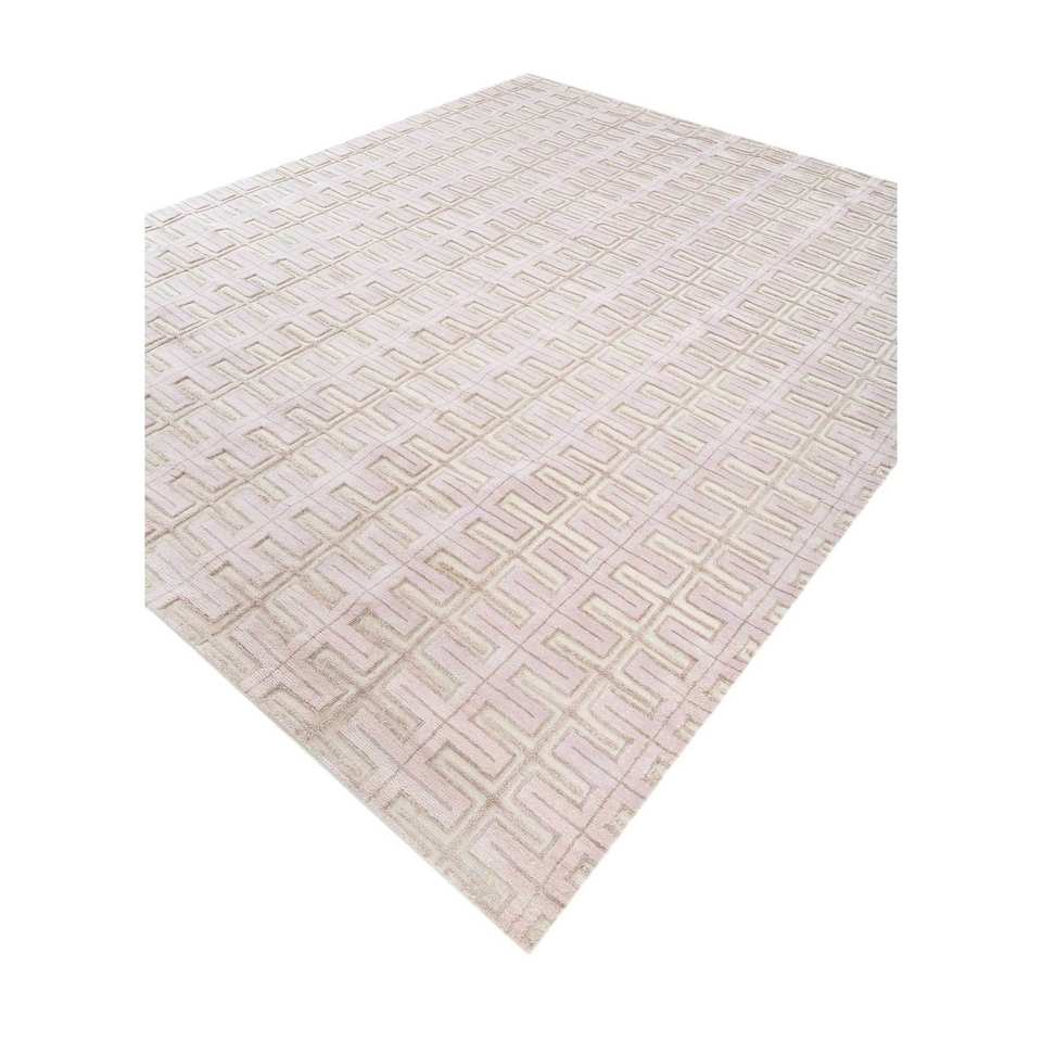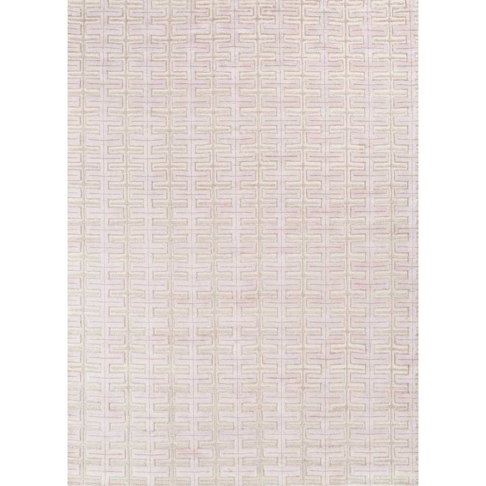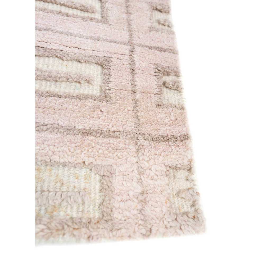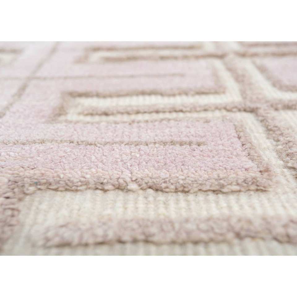 พรมลายเรขาคณิตสีชมพูและสีม่วง Skws-123 ทำด้วยมือจากขนสัตว์และไหมไผ่ สำหรับใช้ในห้องนอนและห้องนั่งเล่น