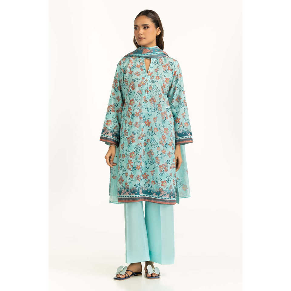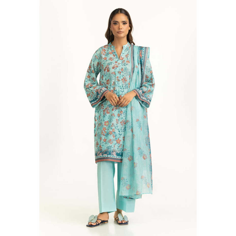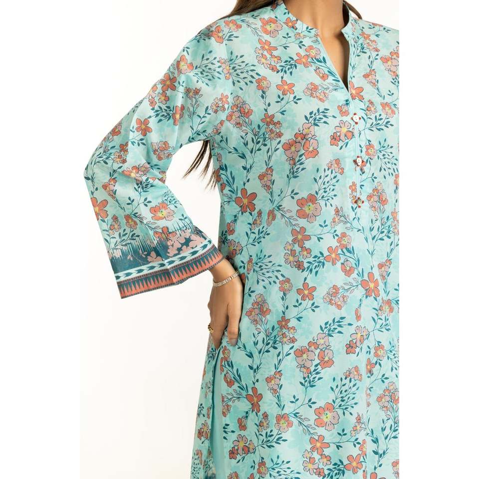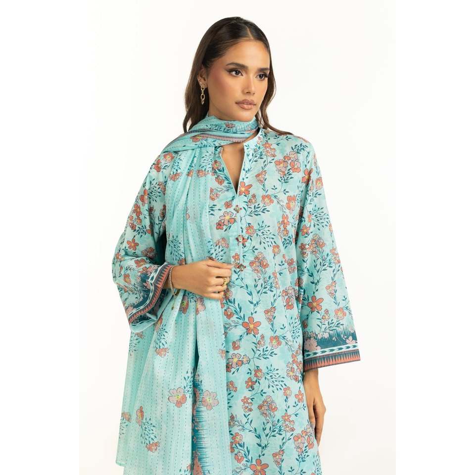 ชุดสูทลายพิมพ์สีฟ้า 3 ชิ้นสำหรับผู้หญิง สไตล์สาวออฟฟิศ ตกแต่งด้วยกระดุม