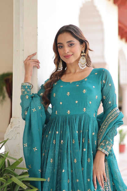 Product Name:Silver Crunchy Sequence Embroidered Gown And Dupatta