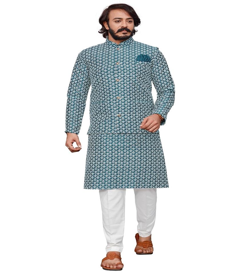 ชุดนอนผู้ชาย,เสื้อแจ็กเก็ตทำงานลายท้องฟ้าสีฟ้า Chikankari Lucknowi สไตล์ Churidar Kurta 2023
