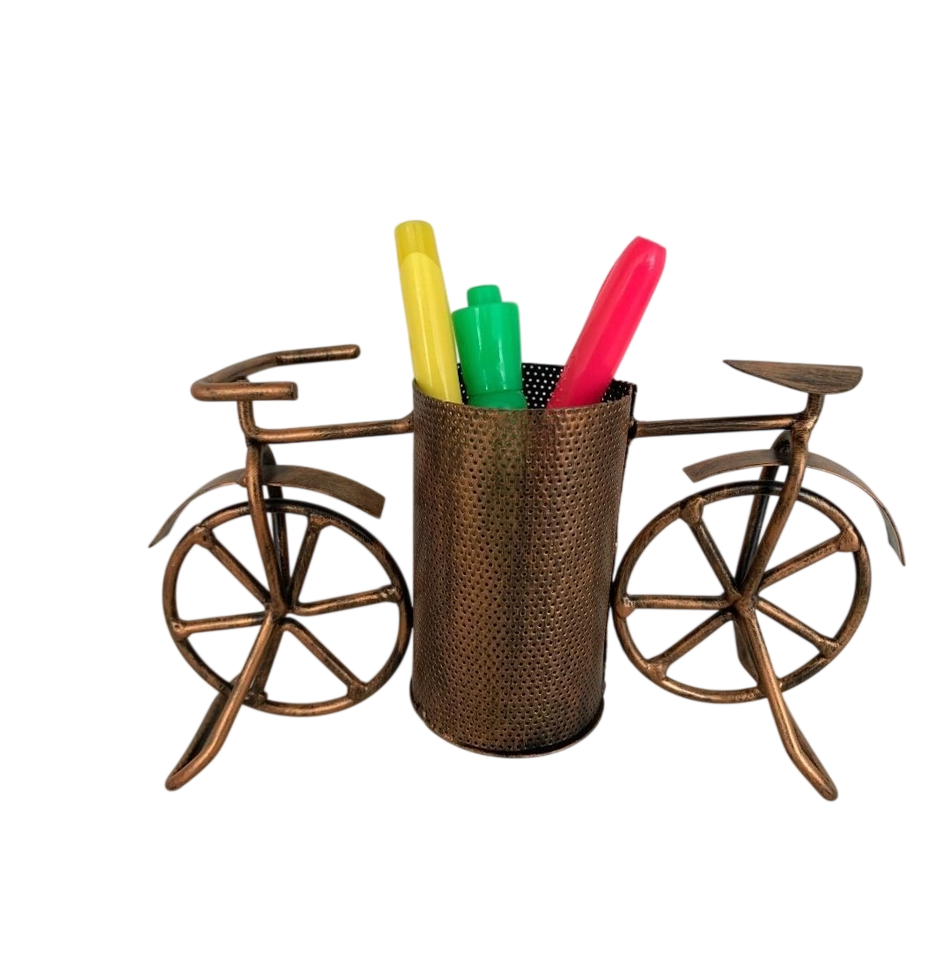 ที่ใส่ดินสอเหล็กสีฟ้า ที่เก็บแปรงแต่งหน้าและเครื่องเขียน รูปทรงกลม ทำจากลวดเหล็ก อุปกรณ์ตกแต่งโต๊ะทำงาน