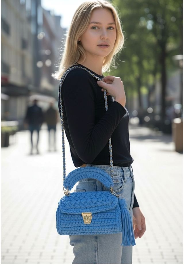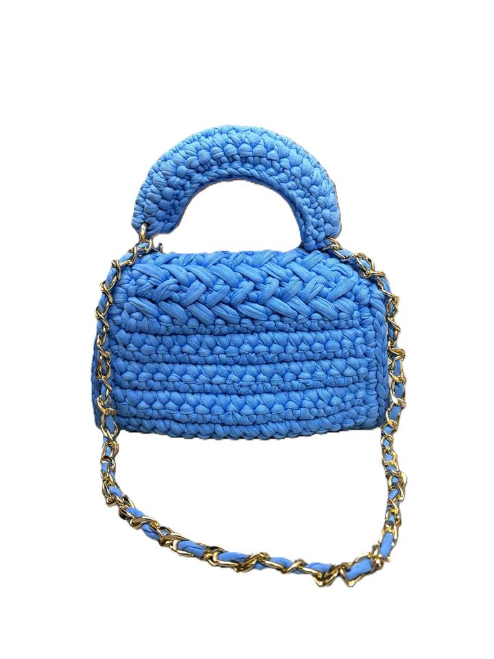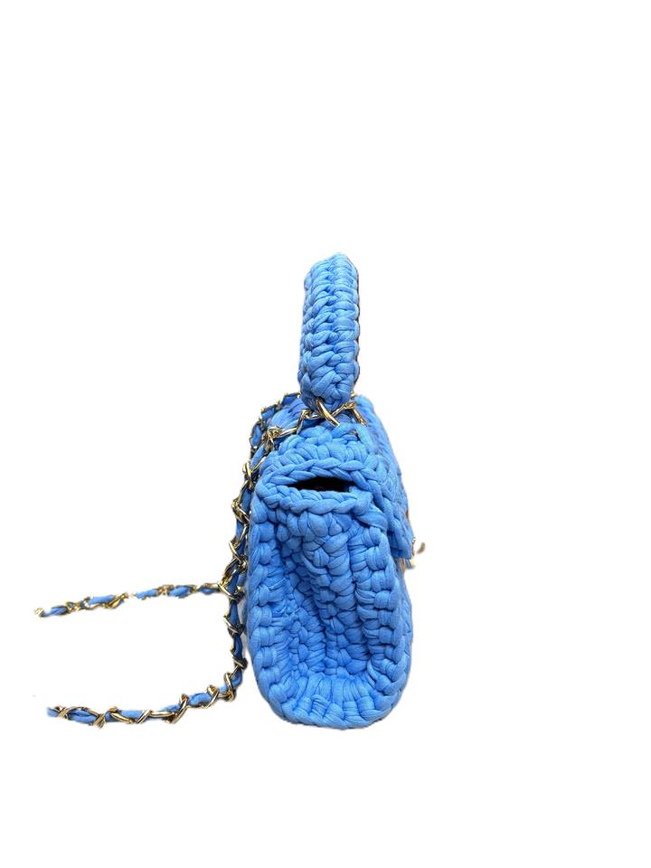 กระเป๋าถือมินิแบบสะพายข้างถักโครเชต์สีฟ้าอ่อน