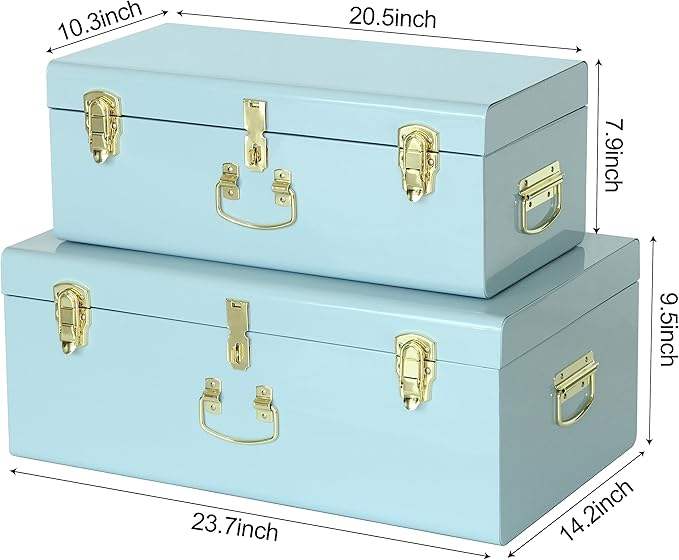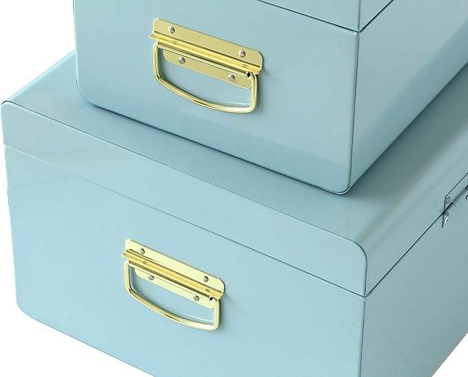 ชุดกล่องเก็บของโลหะตกแต่งสีฟ้าสไตล์วินเทจ พร้อมตัวล็อกสีทองขัดเงา สำหรับห้องนอนและห้องเด็ก