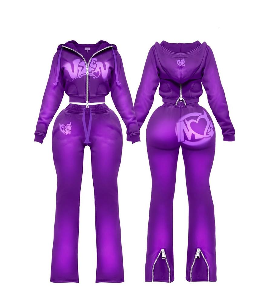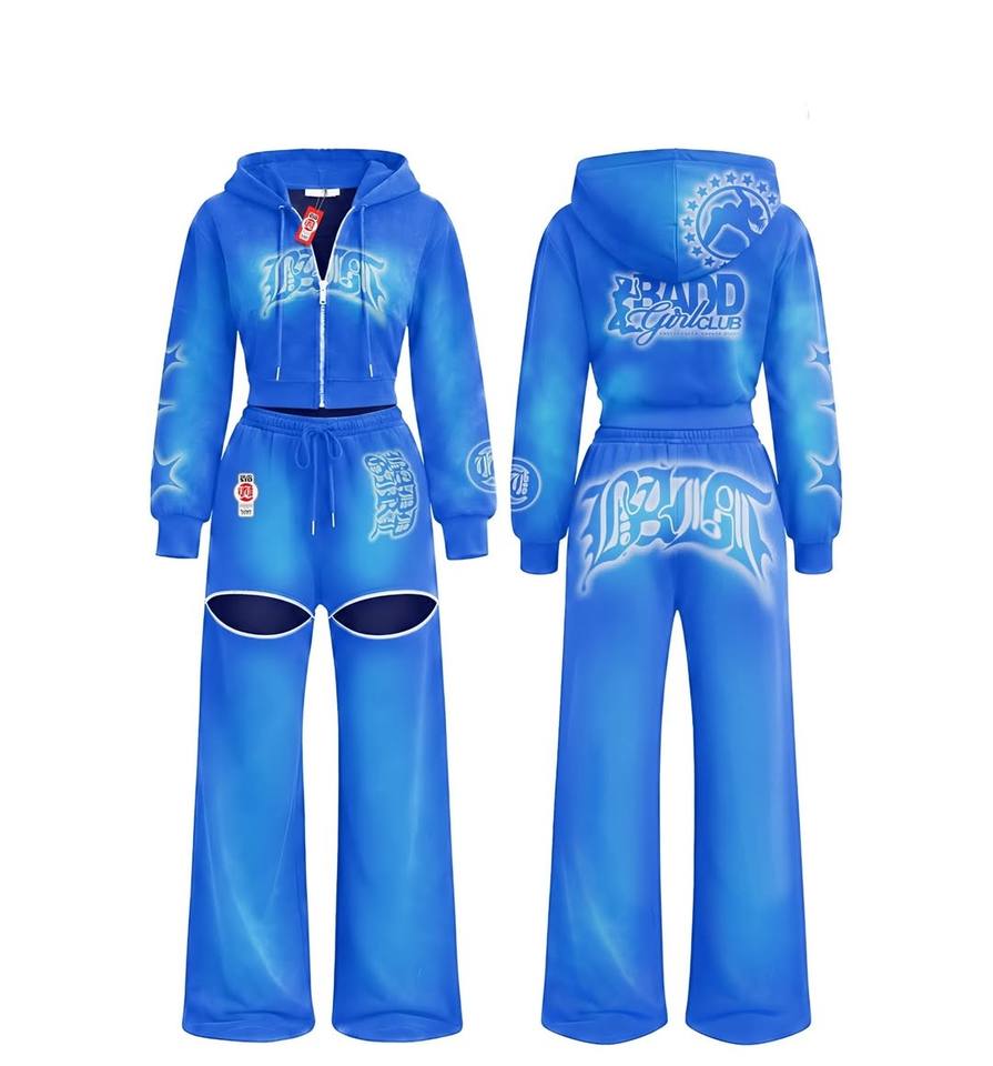 ชุดเซ็ตเสื้อฮู้ดดี้และกางเกงขายาวทรงบ็อกซี่สีฟ้าอ่อน ผ้าหนานุ่มพิเศษ ซิปยาวเต็มตัว ทรงโอเวอร์ไซส์ สองชิ้นเข้าชุดกัน