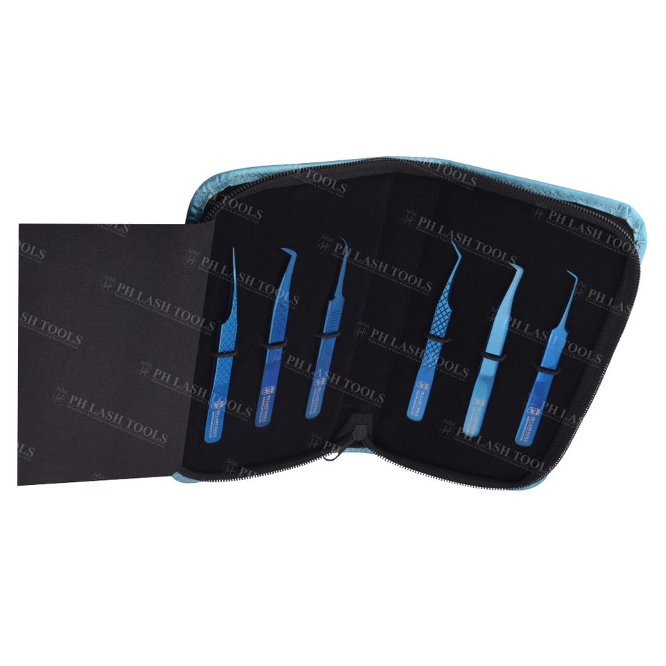 กล่องต่อขนตาสีฟ้า6ชิ้น,กล่องบรรจุแหนบ6ชิ้นแหนบต่อขนตาแบบเรียบง่ายฉลากส่วนตัว