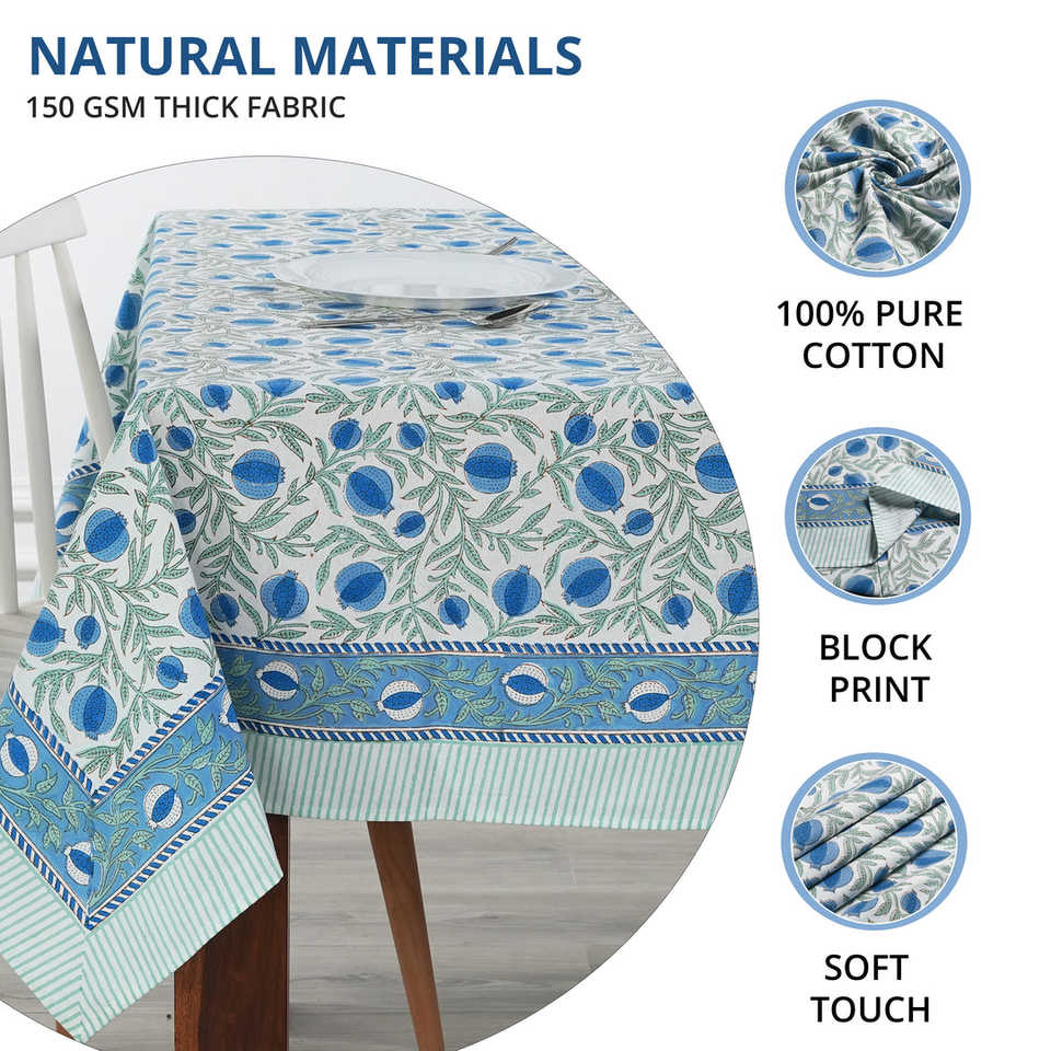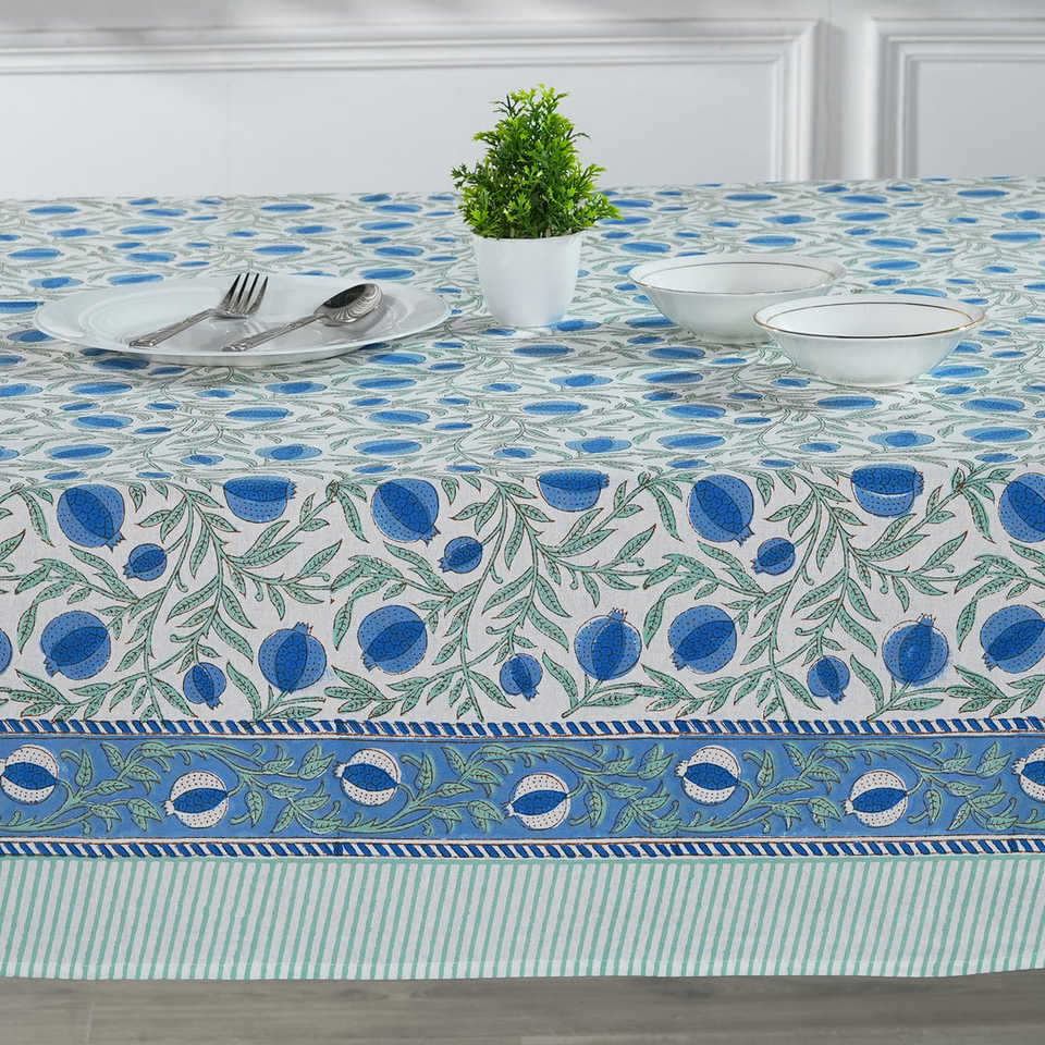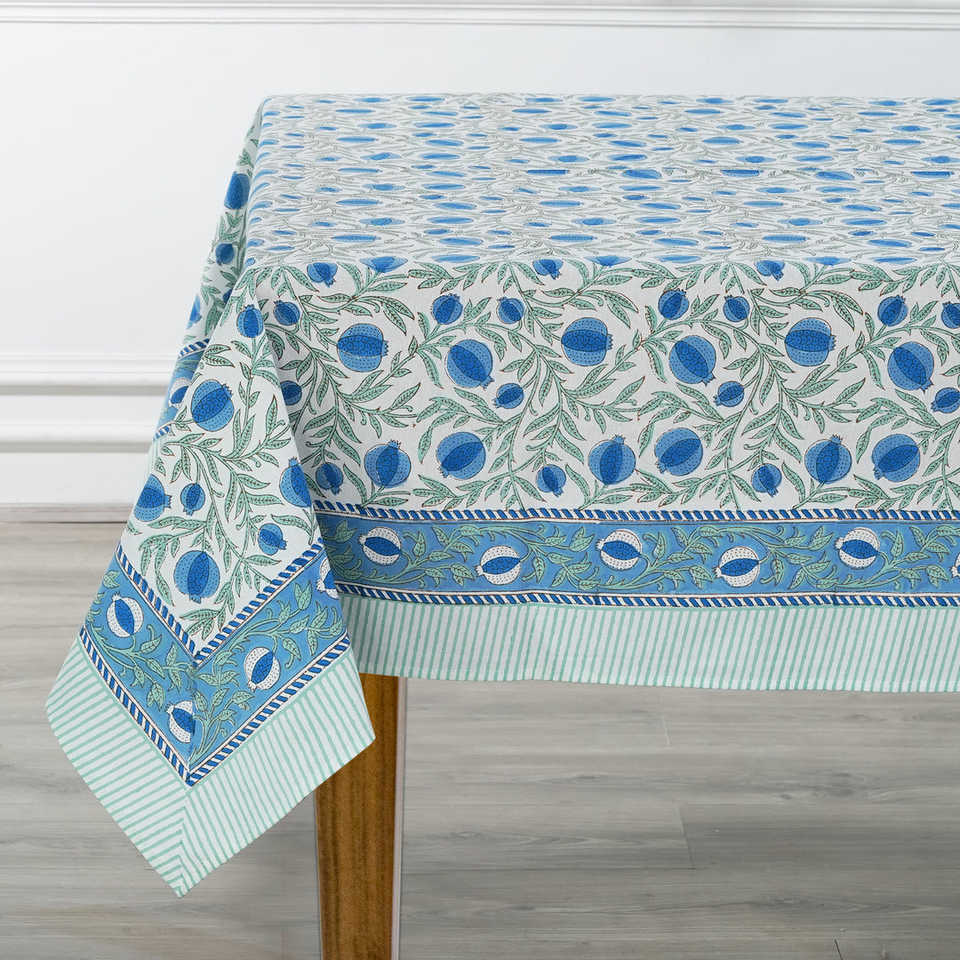ผ้าปูโต๊ะผ้าฝ้ายพิมพ์ลายบล็อกมือ