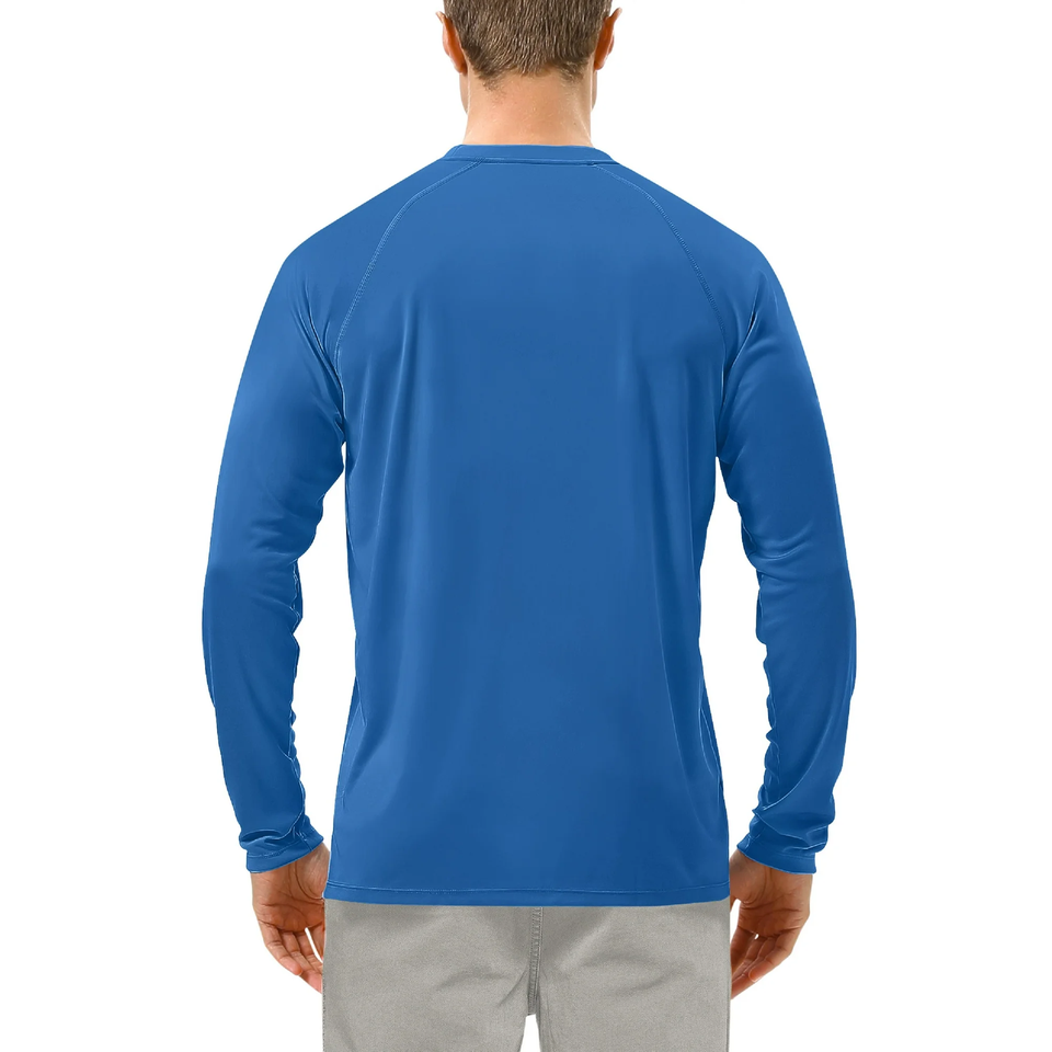 เสื้อยืดคอกลมสีฟ้าอ่อนสำหรับผู้ชาย แฟชั่นเรียบง่าย ดีไซน์เองได้ แขนยาว ทรงเข้ารูป สไตล์ลำลอง