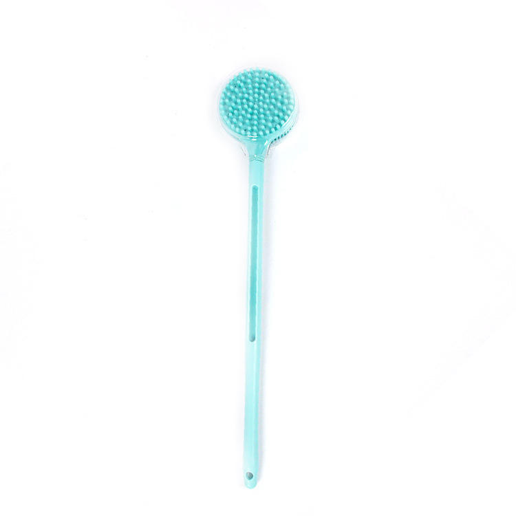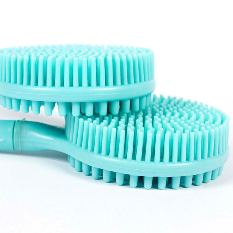 แปรงอาบน้ำซิลิโคนสีฟ้ารูปวงรีด้ามยาวสองด้านสำหรับนวดตัว ใช้ได้ทั่วไป