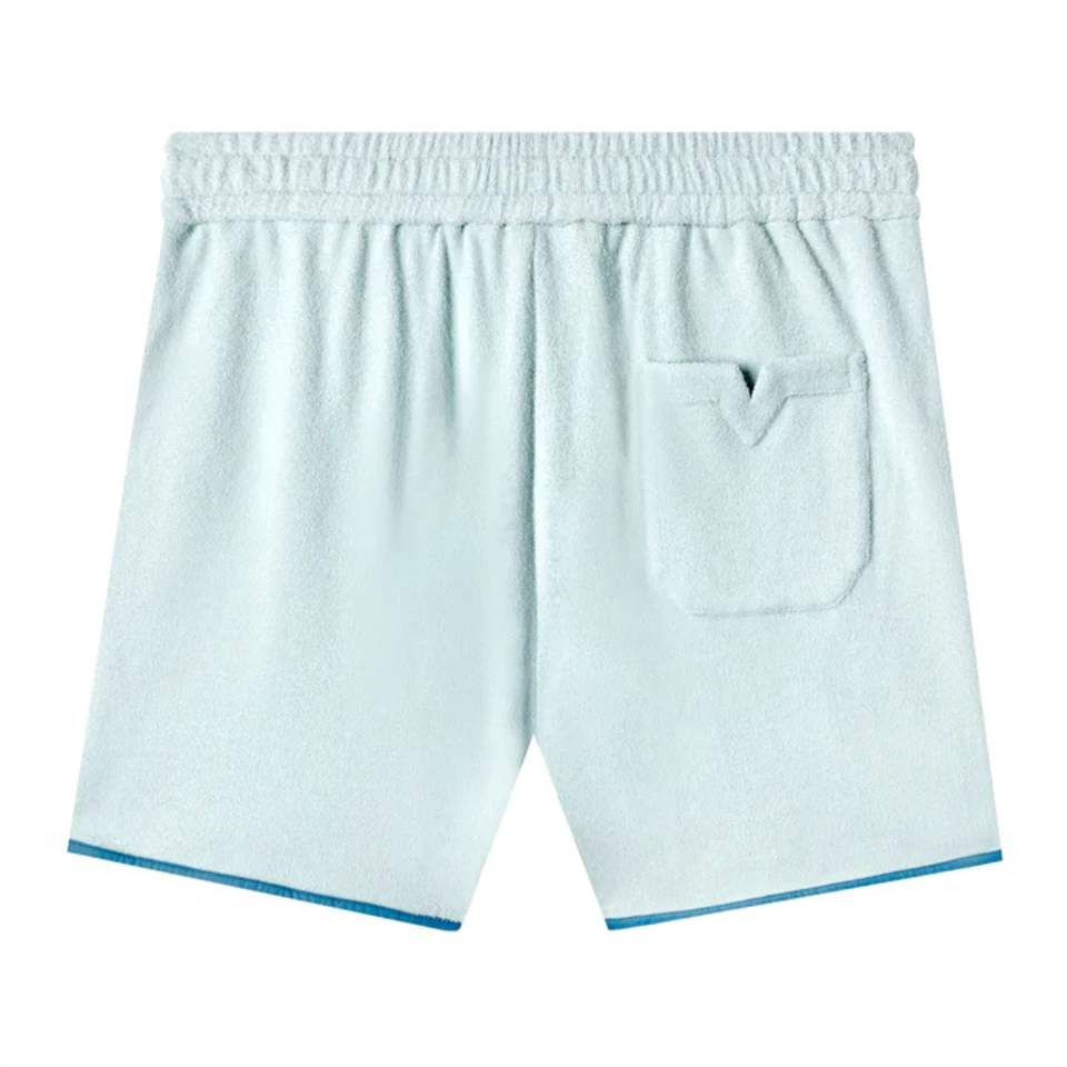 ชุดเสื้อกางเกงผ้าเทอร์รี่ออร์แกนิคพร้อมกระเป๋าติดซิปทำจากทองเหลืองสีฟ้าเหมาะสำหรับออกนอกบ้านในฤดูร้อน